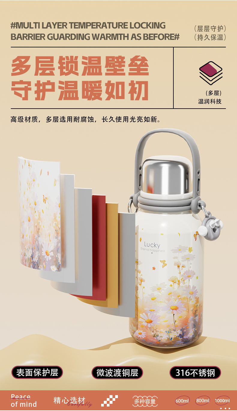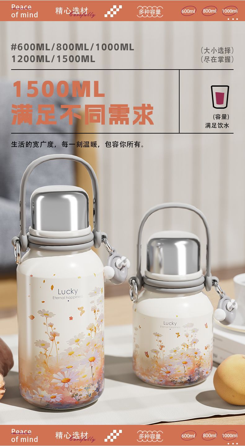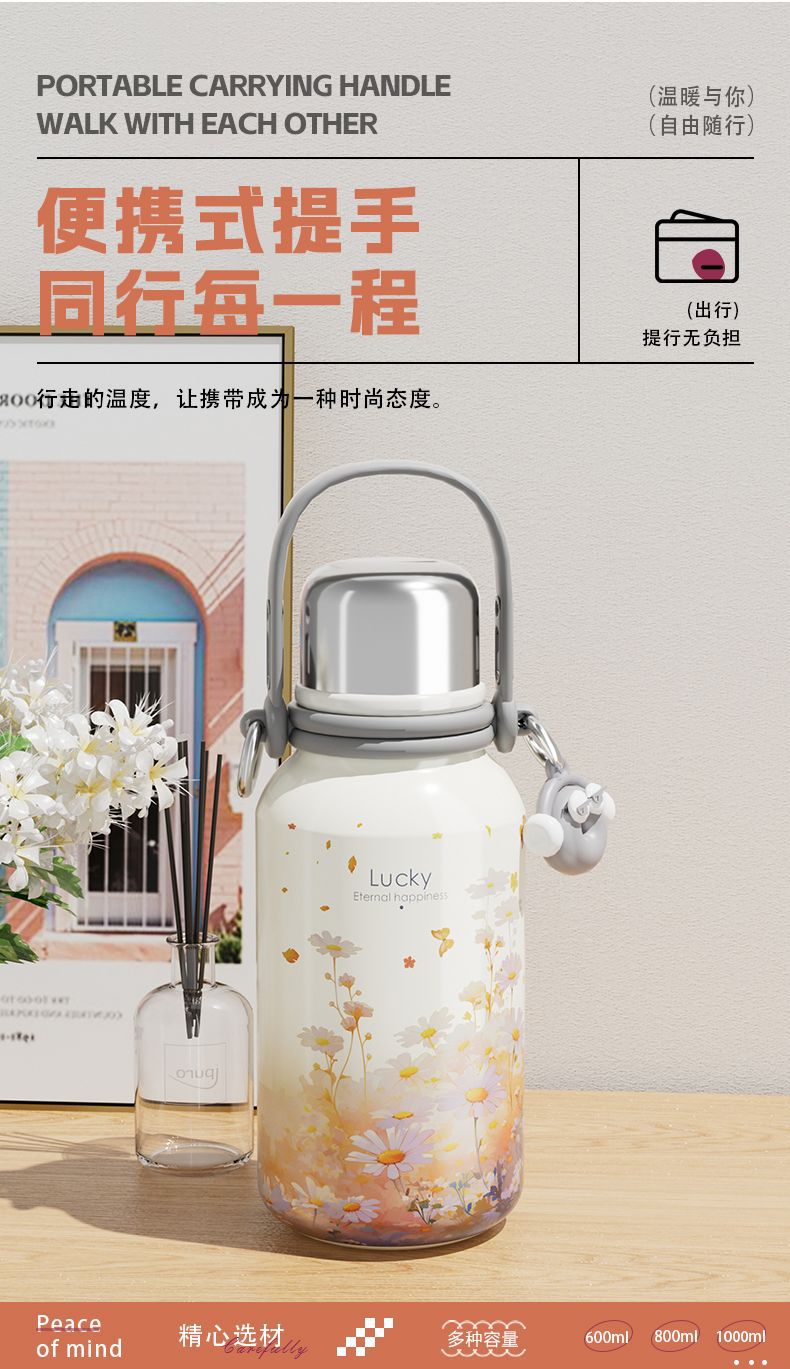 여학생을위한 대용량 보온병 컵 2024 새로운 하이 찾고 316 스테인레스 스틸 워터 컵 주전자 휴대용스토어 가기