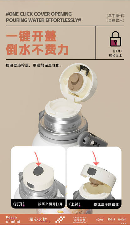 여학생을위한 대용량 보온병 컵 2024 새로운 하이 찾고 316 스테인레스 스틸 워터 컵 주전자 휴대용
