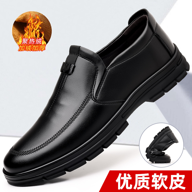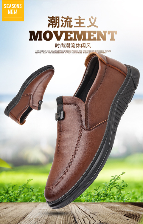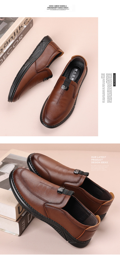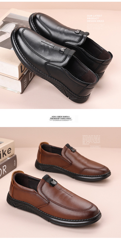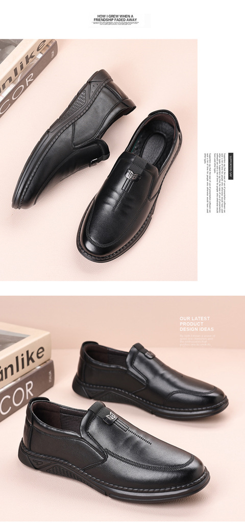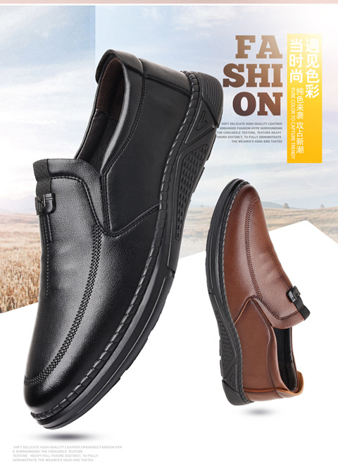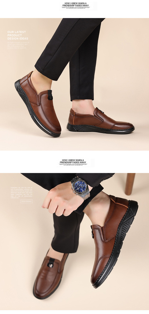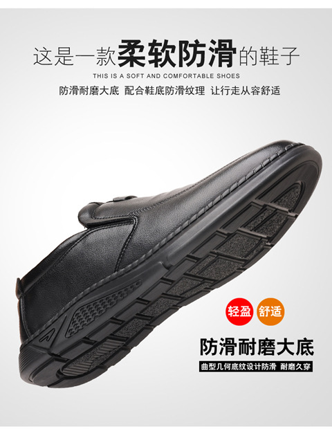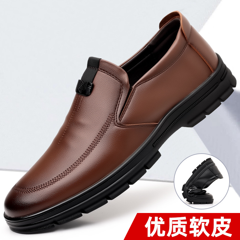 새로운 내마모성 가죽 신발 부드러운 밑창 Cowhide 정품 가죽 남성 비즈니스 아빠 통기성 슬립 온 부드러운 가죽 캐주얼 중년 남성 신발스토어 가기