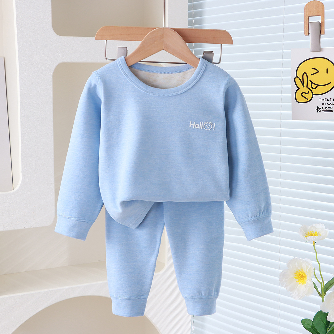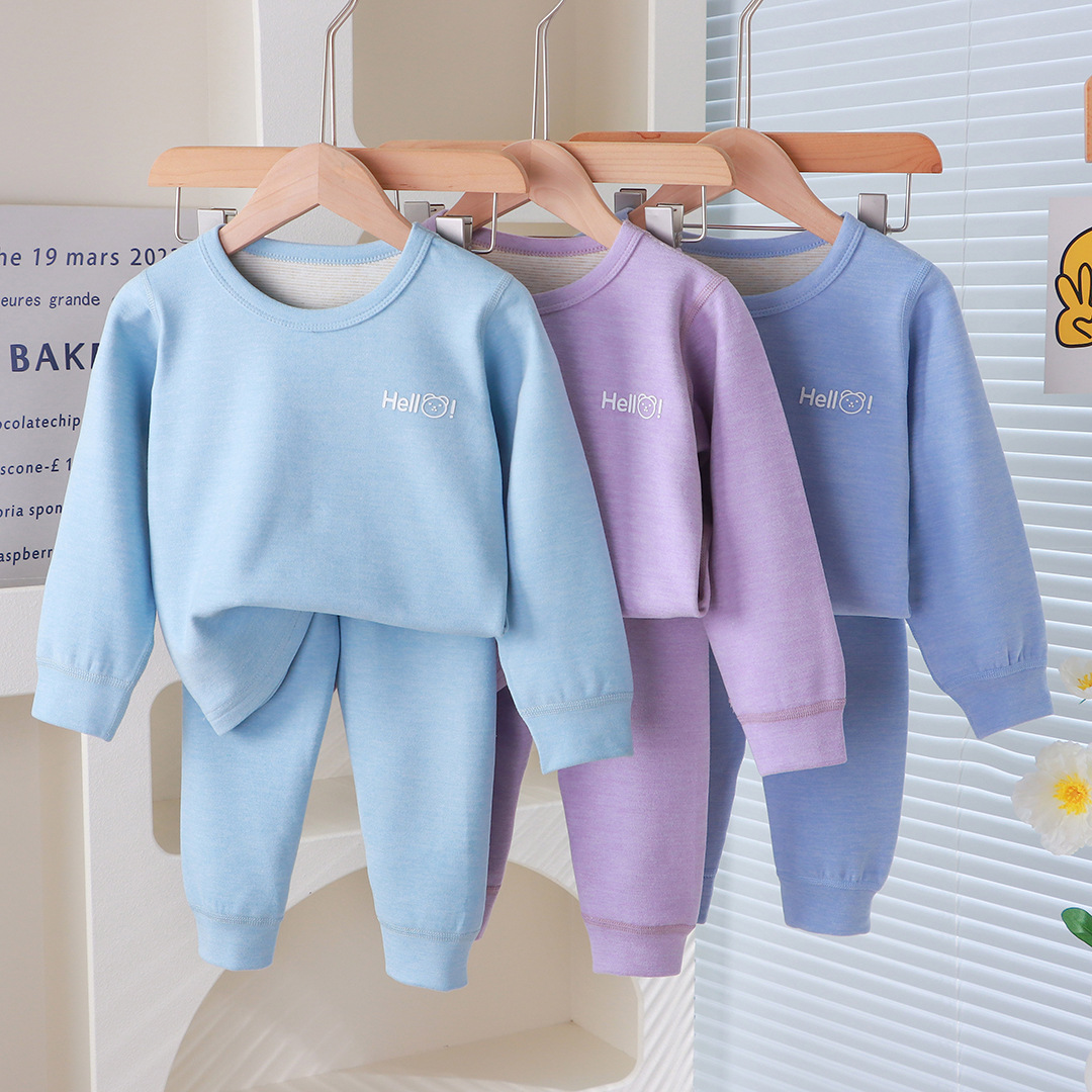 어린이 새 울 실크 세트 뼈없는 남자 잠옷 여성 따뜻한 가을과 겨울 중견 어린이 잠옷
