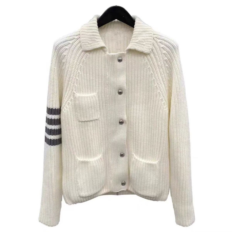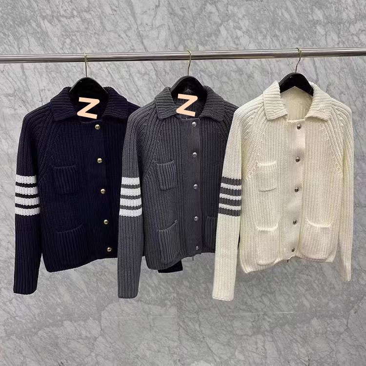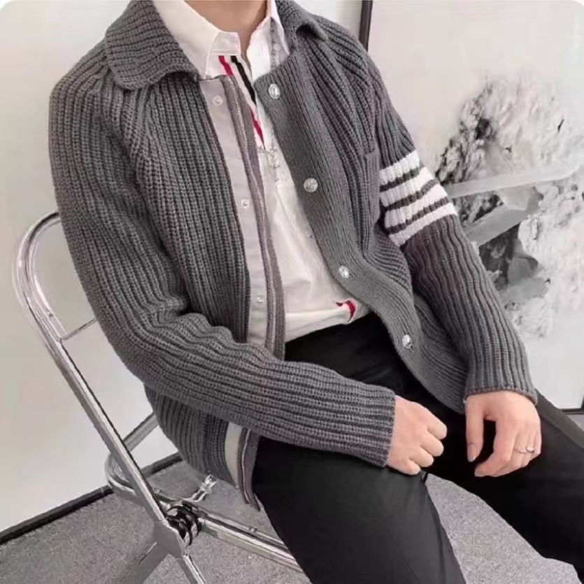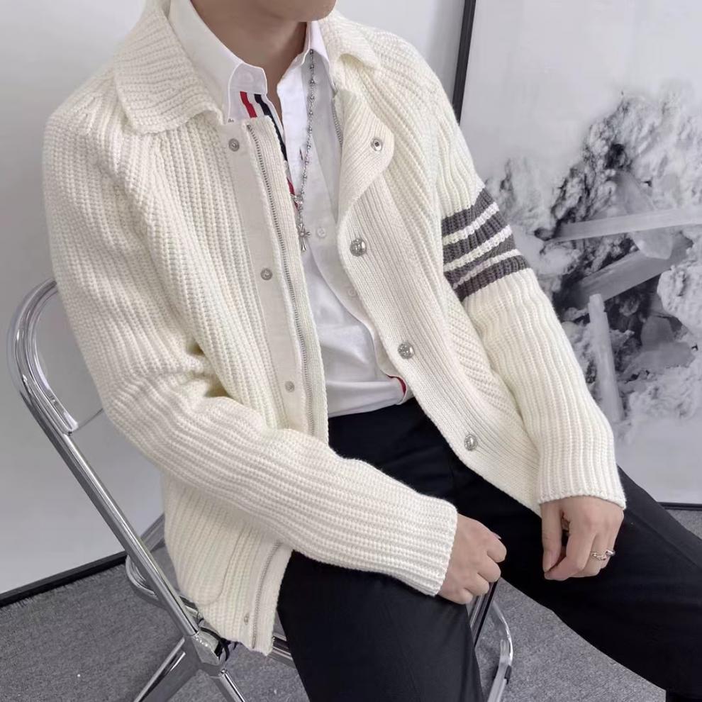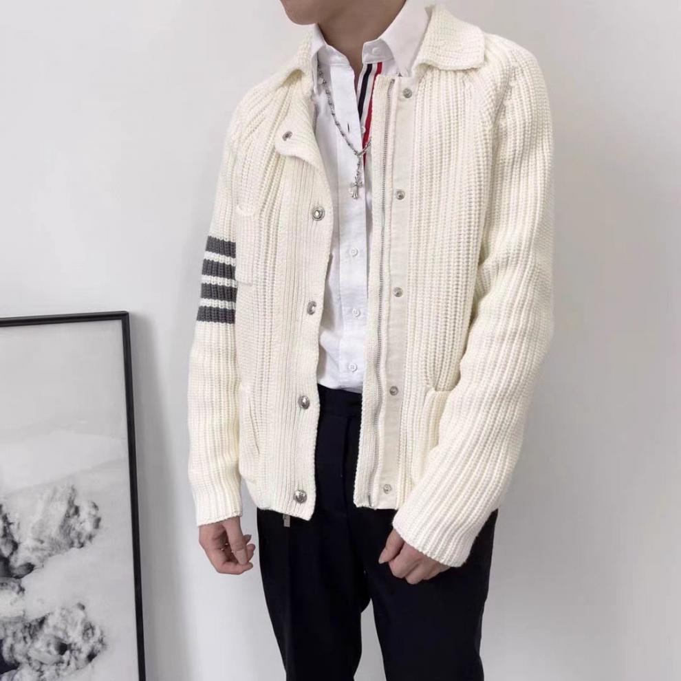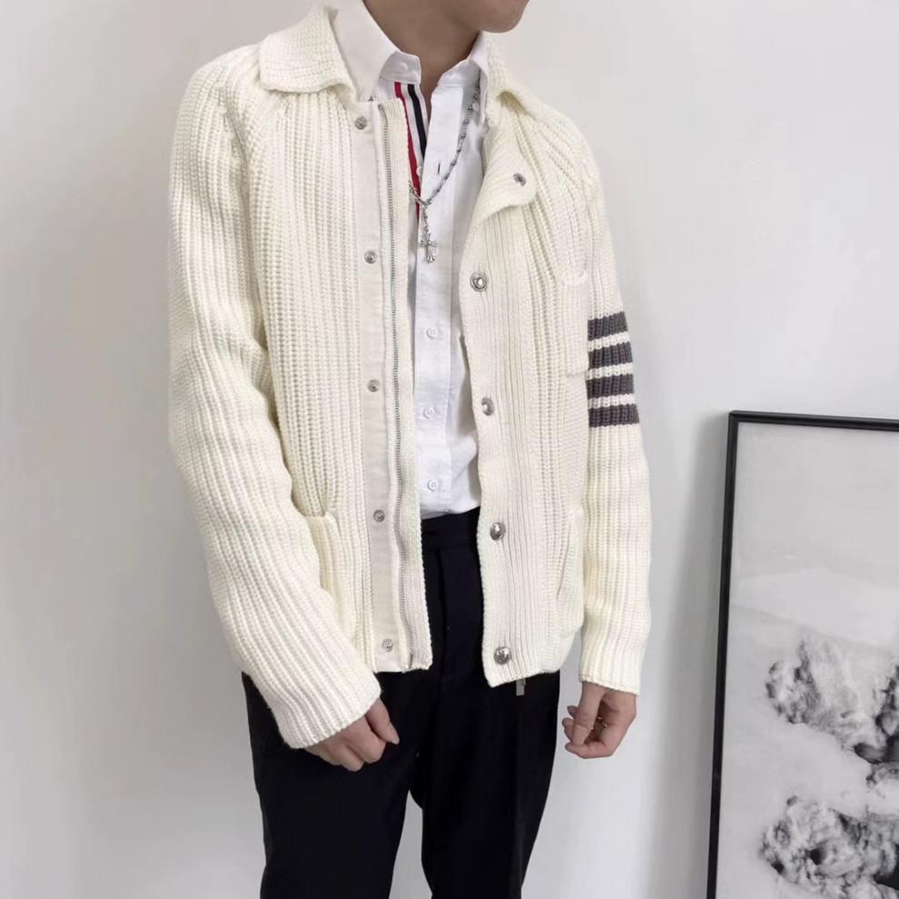 가을과 겨울 새로운 스타일 TB 스트라이프 니트 카디건 재킷 남성 패션 청소년 올 매치 캐주얼 커플 니트 스웨터 스웨터 스웨터스토어 가기