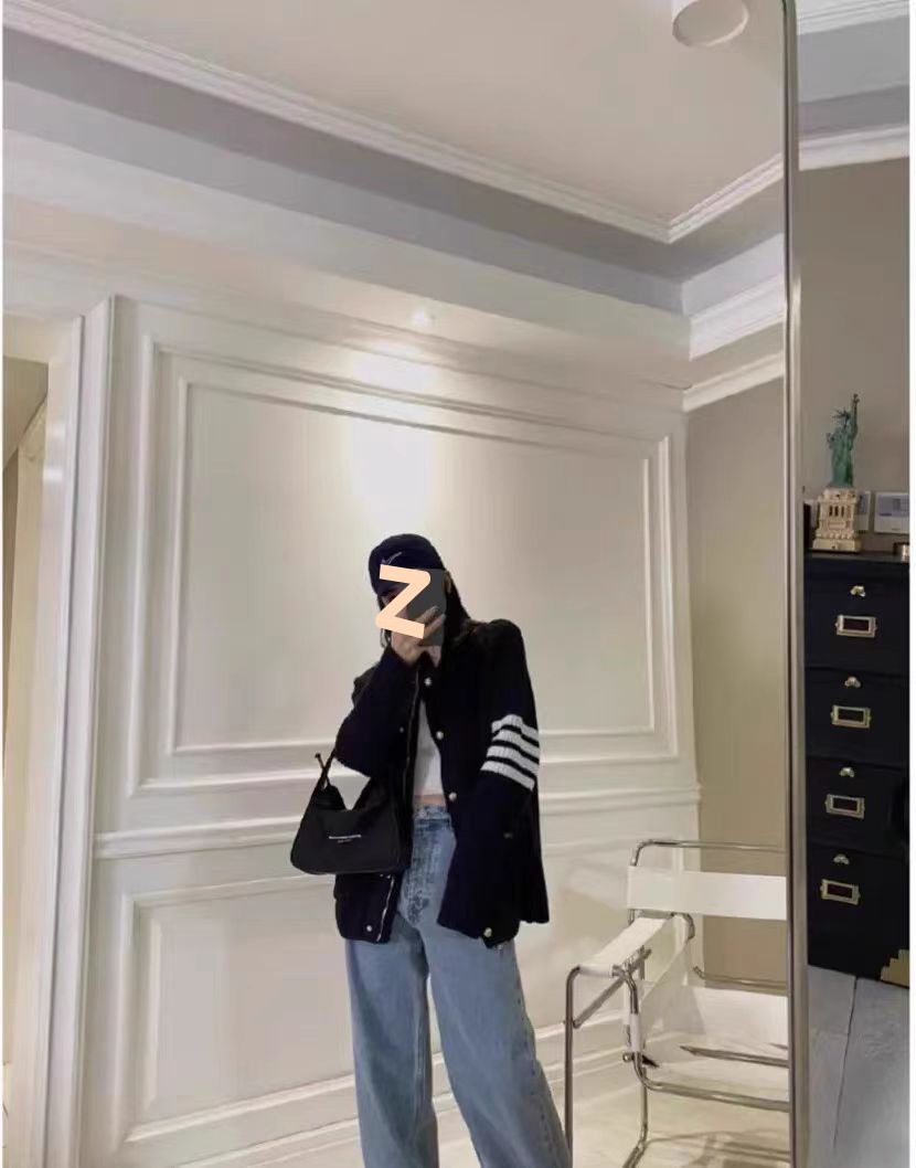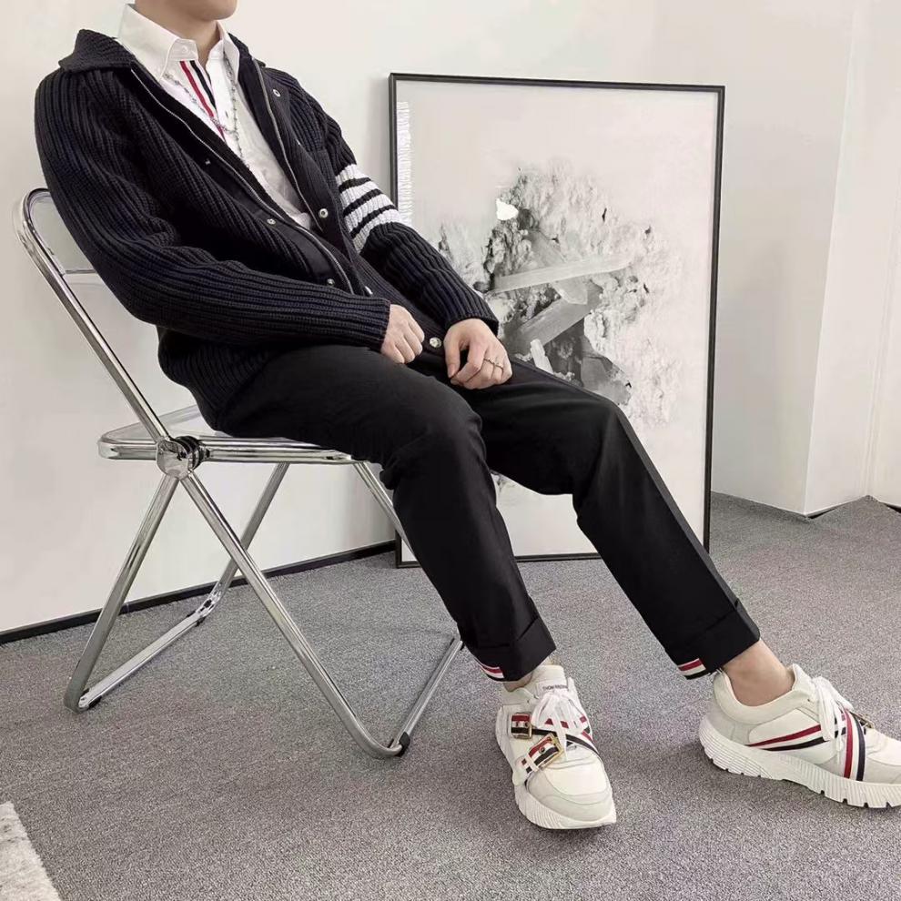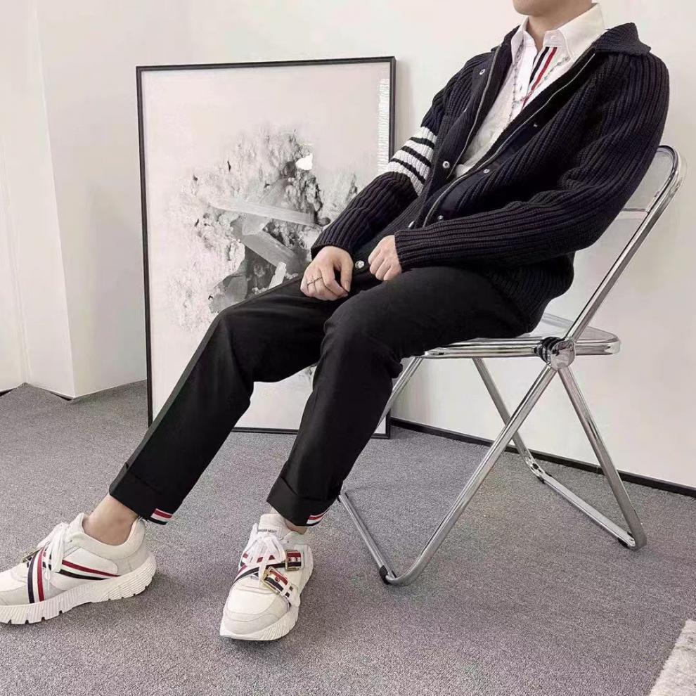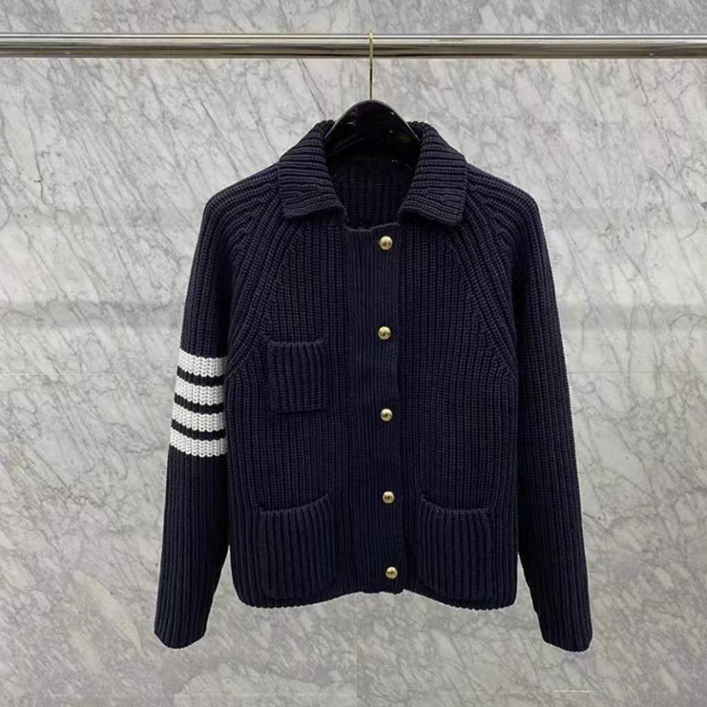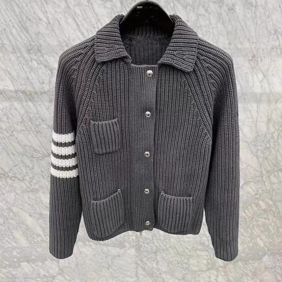 가을과 겨울 새로운 스타일 TB 스트라이프 니트 카디건 재킷 남성 패션 청소년 올 매치 캐주얼 커플 니트 스웨터 스웨터 스웨터스토어 가기