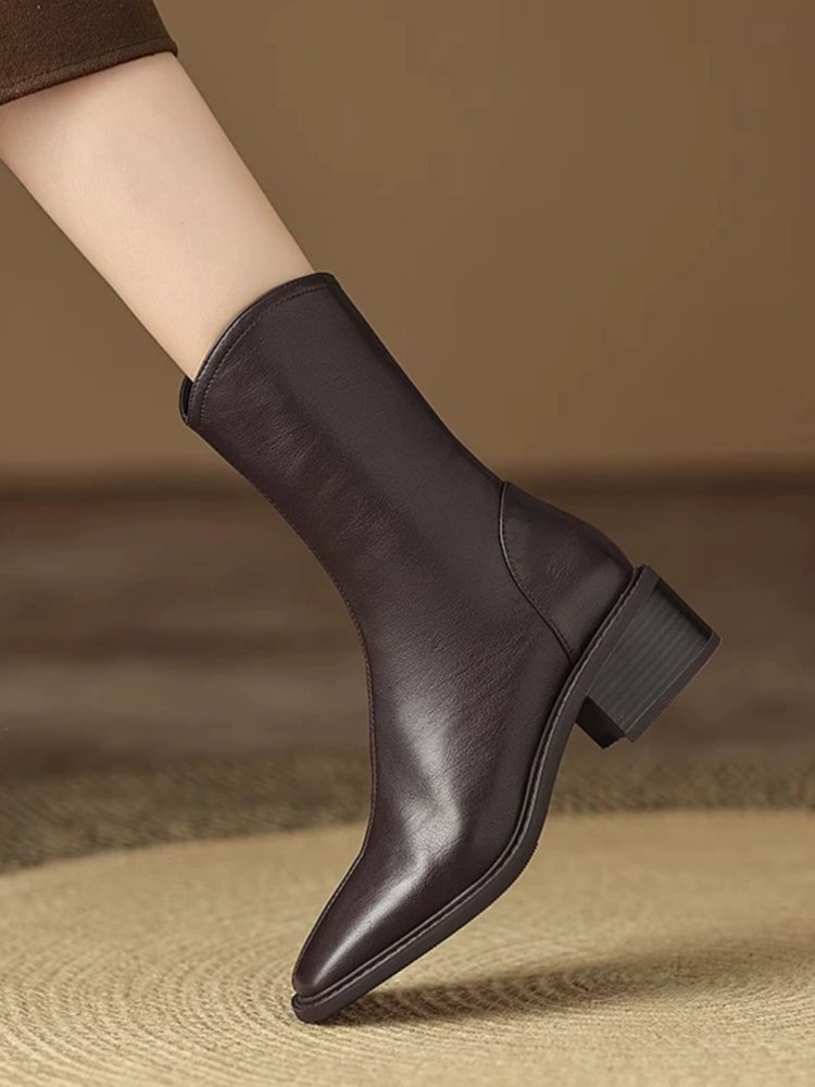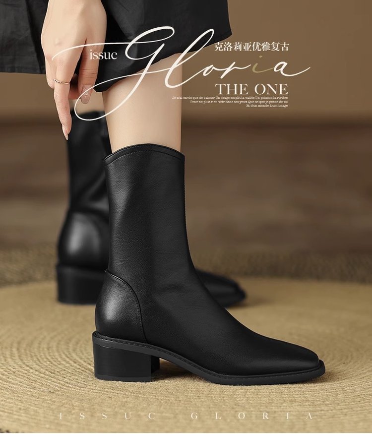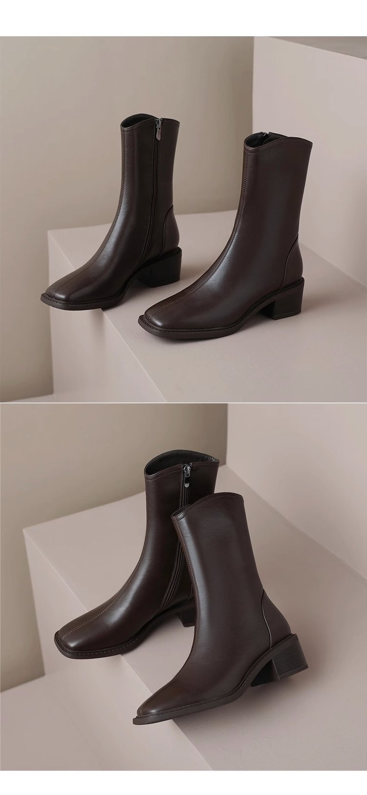 정품 가죽 패션 부츠 여성 2024 폭발성 가을 및 겨울 여성 부츠 하이 엔드 올 매치 스퀘어 헤드 두꺼운 힐 사이드 지퍼 마틴 부츠