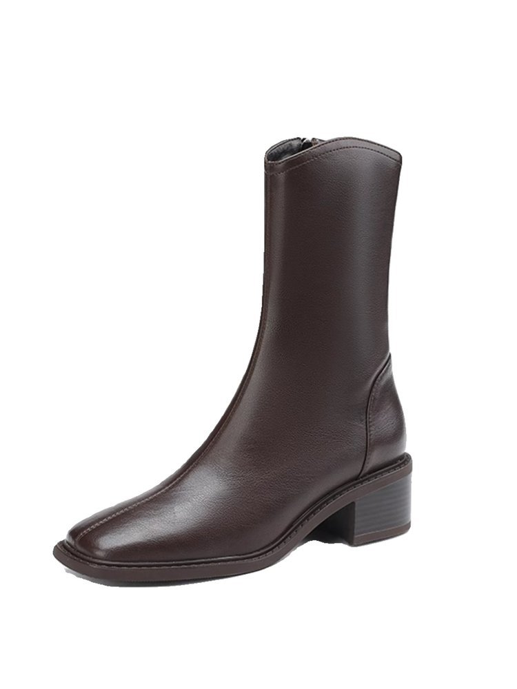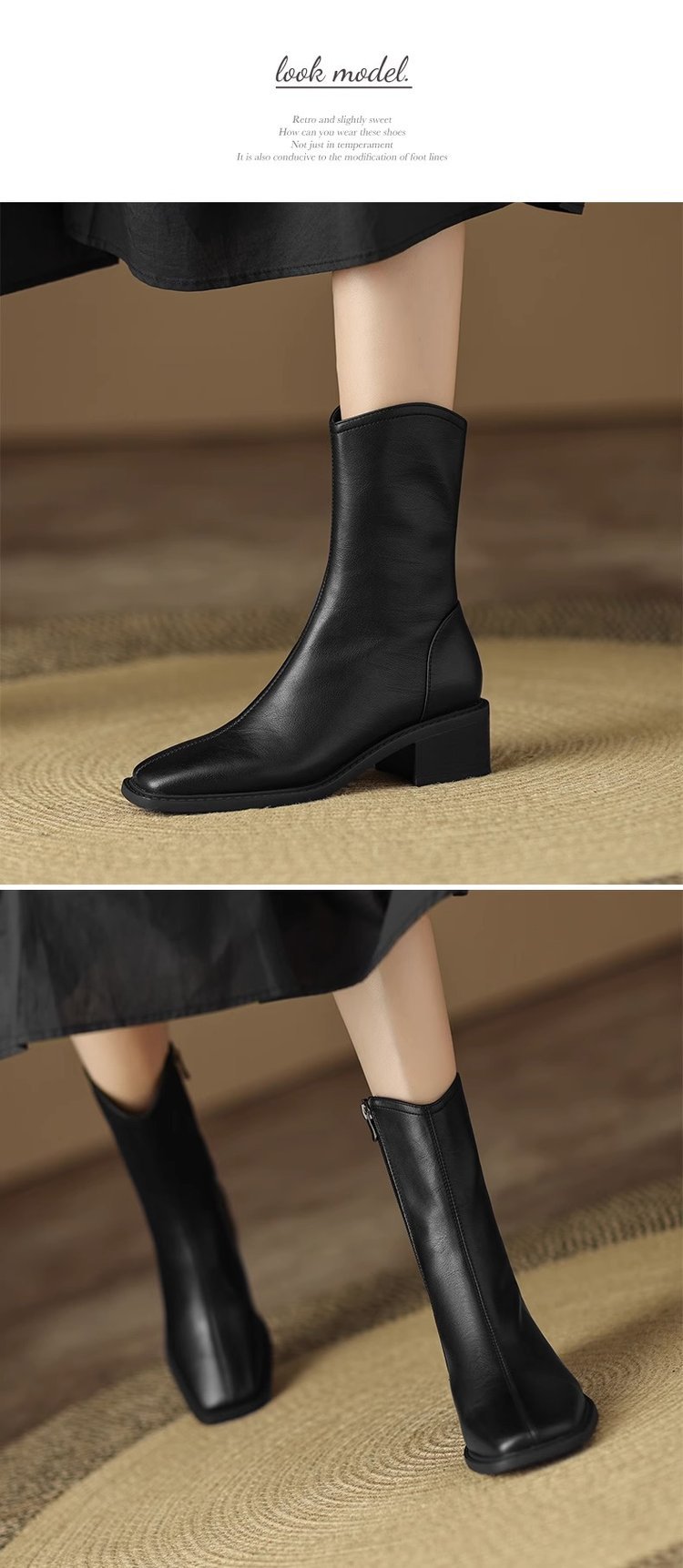 정품 가죽 패션 부츠 여성 2024 폭발성 가을 및 겨울 여성 부츠 하이 엔드 올 매치 스퀘어 헤드 두꺼운 힐 사이드 지퍼 마틴 부츠스토어 가기