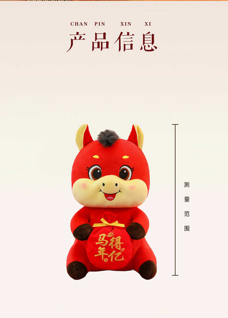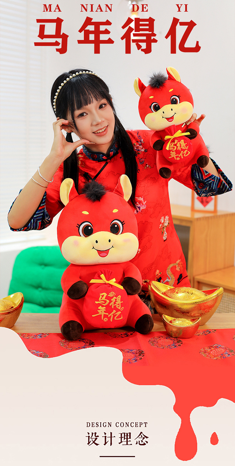 2026년 말년 마스코트 봉제 인형, 말의 해 동물 인형, 도매 맞춤형 로고, 회사 연례 행사 선물