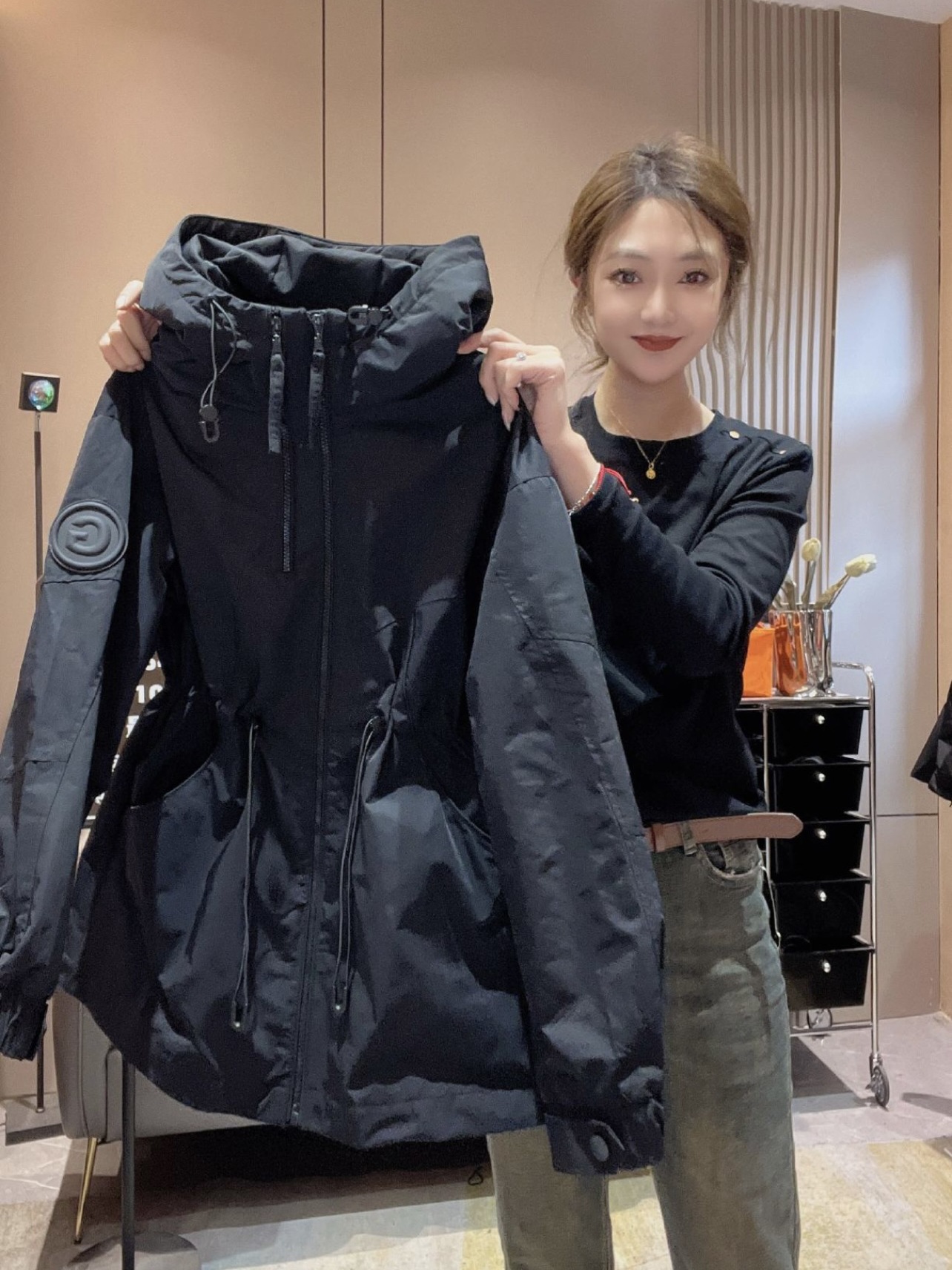 트렌디 한 브랜드 캐주얼 중간 길이 재킷 여성의 패셔너블 루즈 더블 지퍼 유럽 가을 새 재킷 윈드브레이커스토어 가기