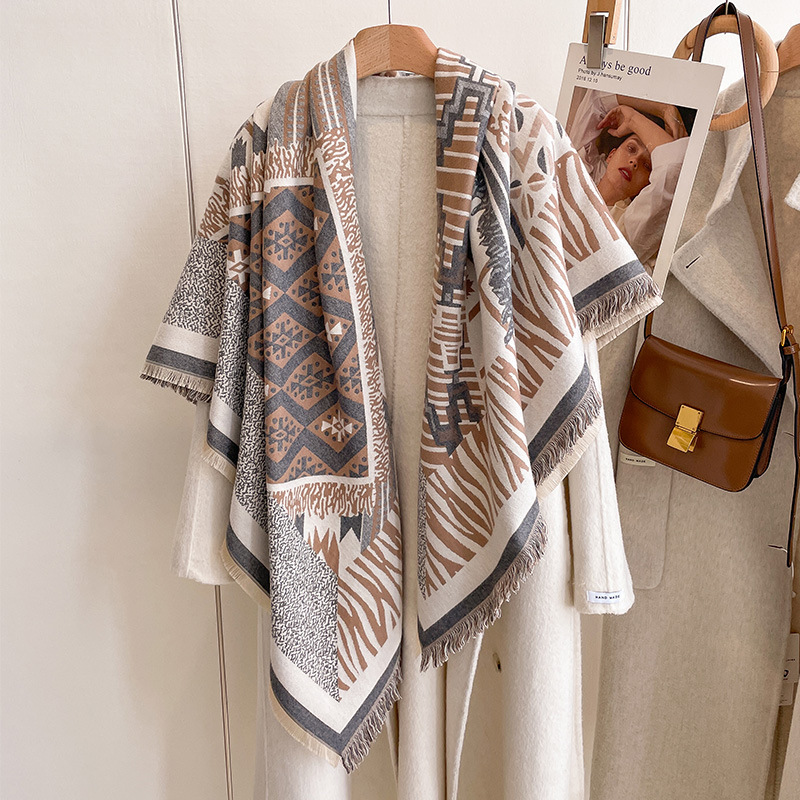 패션 올 매치 가을과 겨울 새로운 여성의 캐시미어 따뜻한 광장 인쇄 고급 우아한 에어컨 목도리 스카프스토어 가기