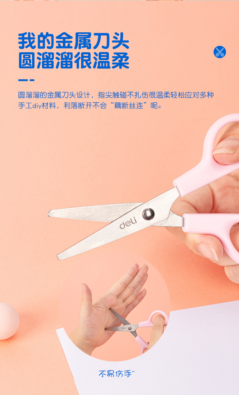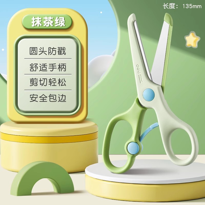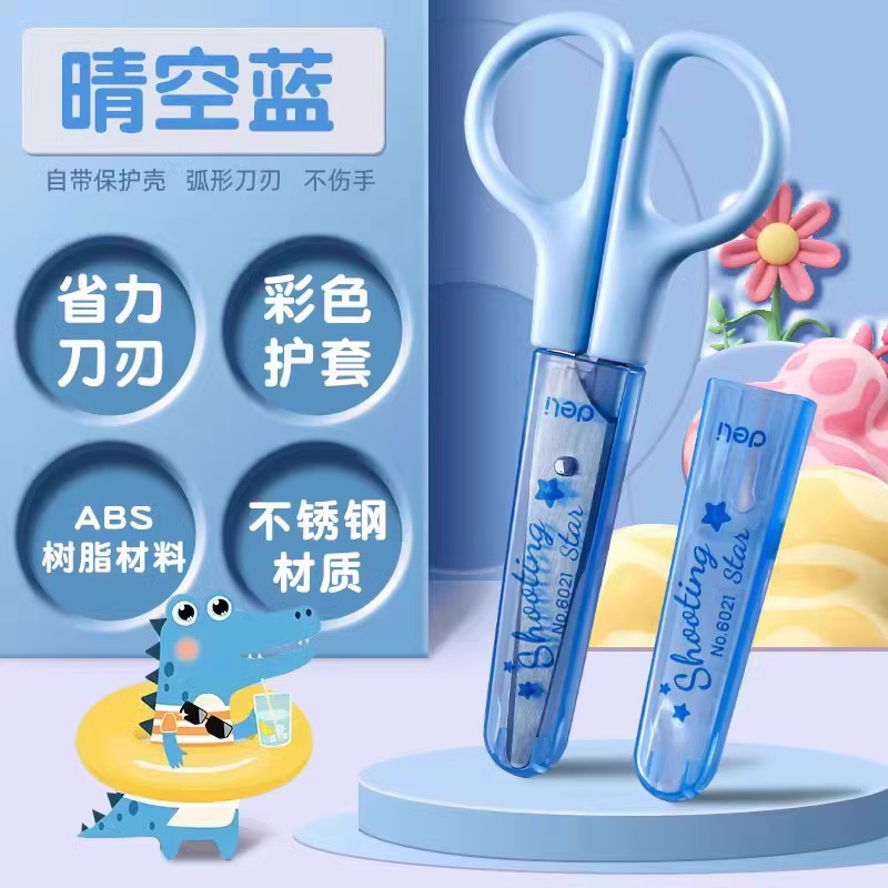 델리 6021 가위 가정용 수제 소형 가위 초등학생을위한 안전 보호 커버가있는 어린이 종이 컷 가위
