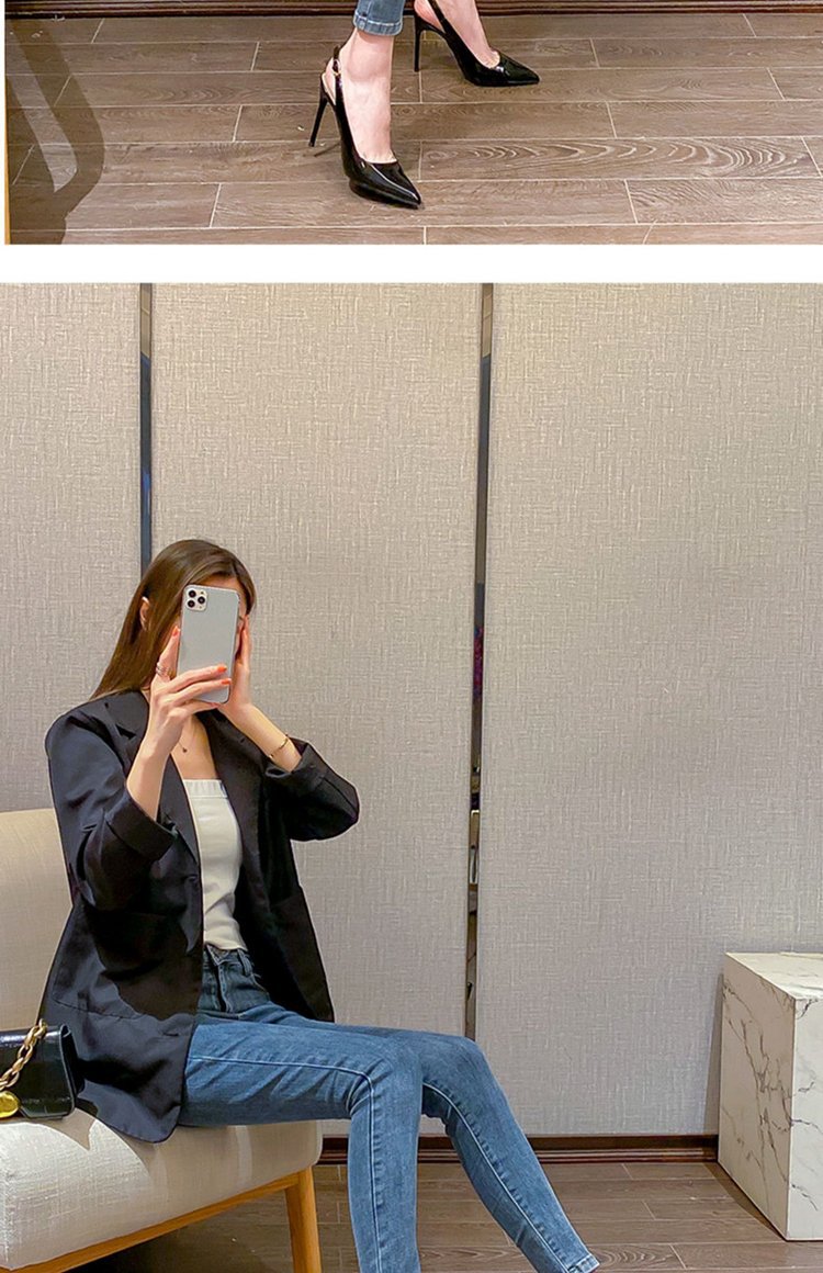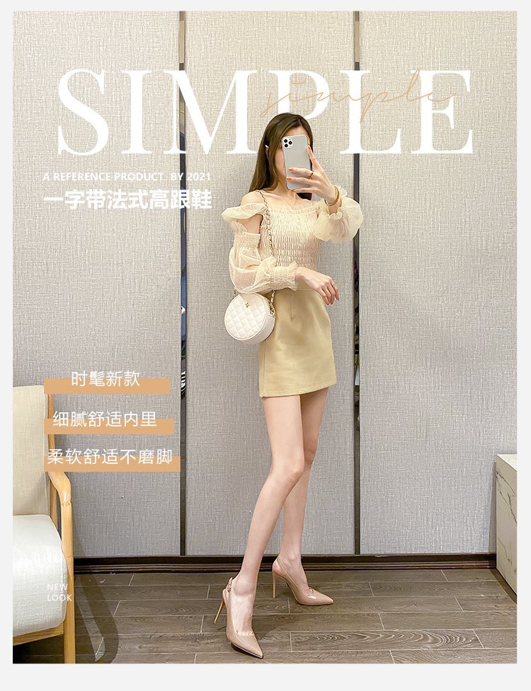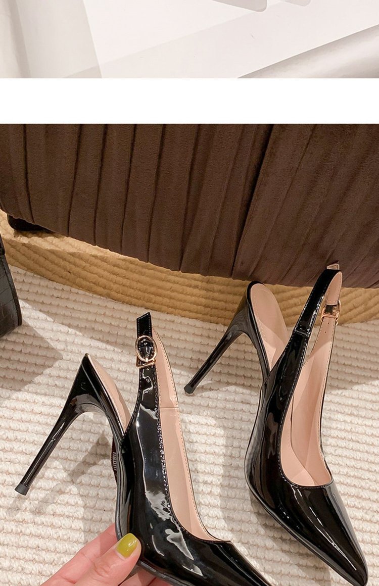 샤넬 스타일 연예인 여성 헤어 하이힐 2024 여름 새로운 젠틀 누드 특허 가죽 스틸레토 힐 버클 샌들스토어 가기