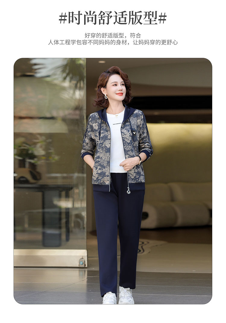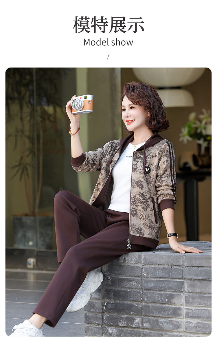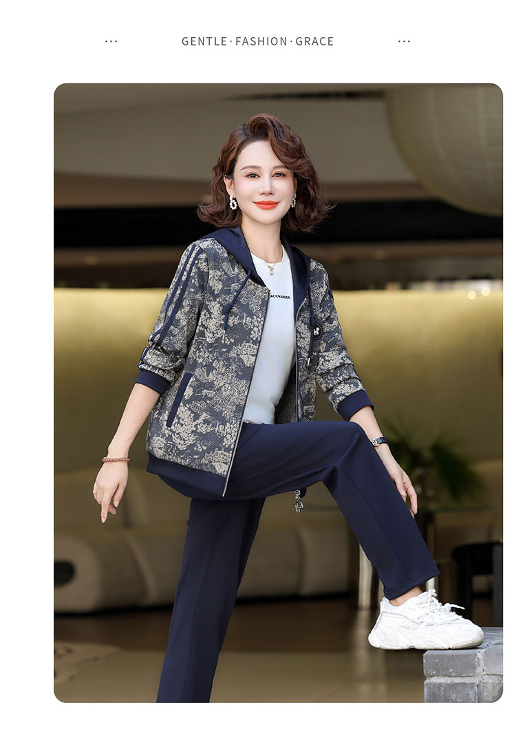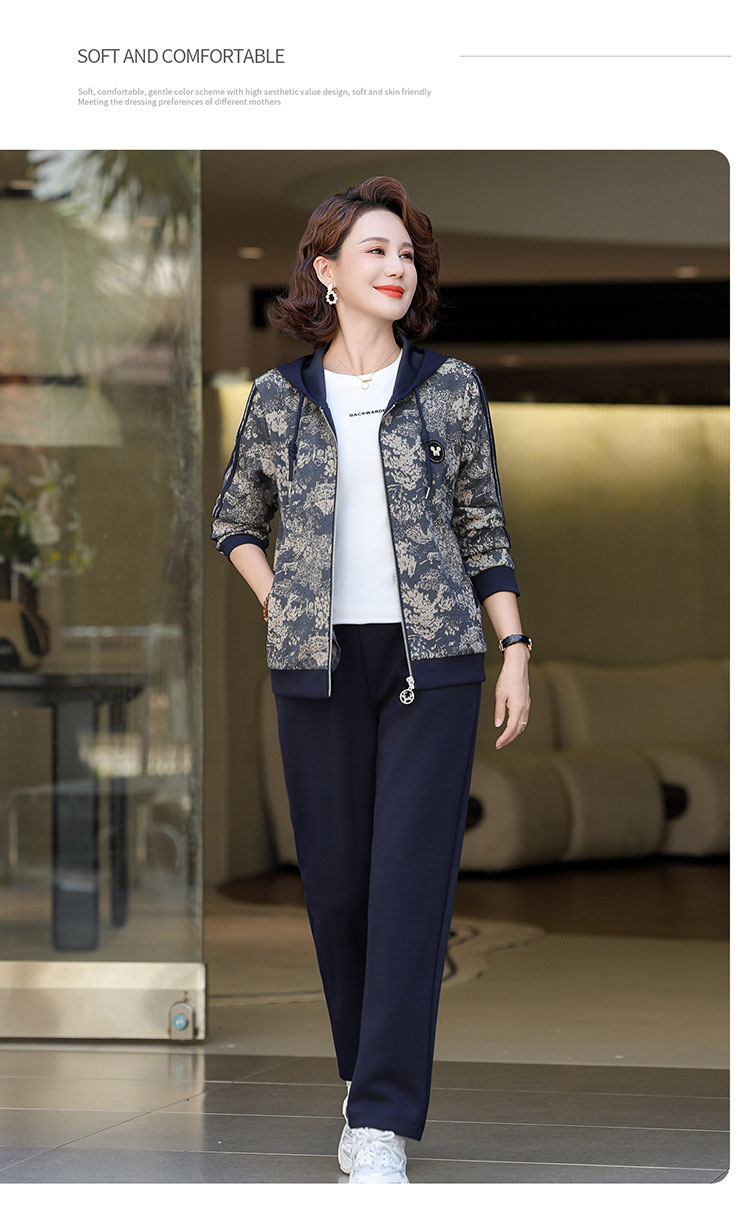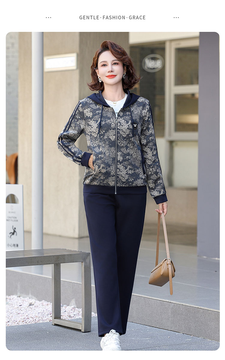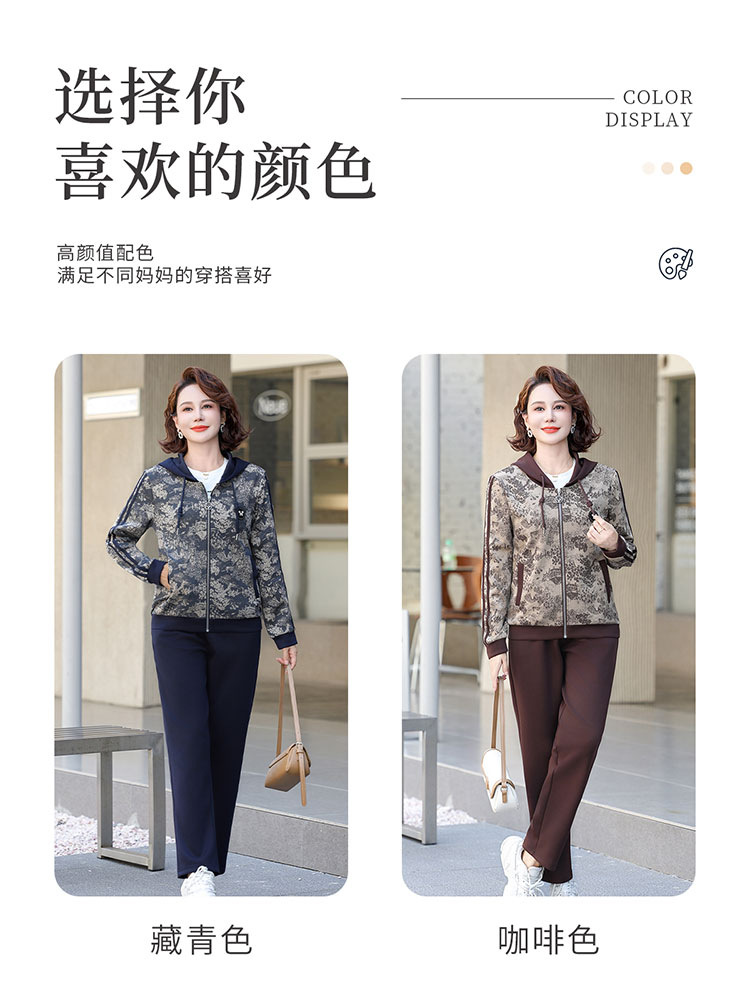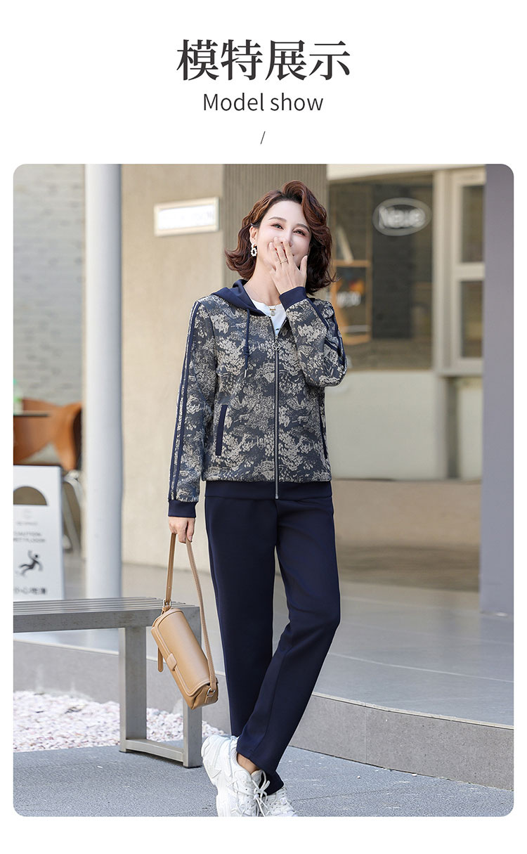 어머니의 운동복 코트 새로운 세트 중년 두건 중년 및 노인 여성 의류 봄과 가을 연령 감소 캐주얼 투피스 세트스토어 가기