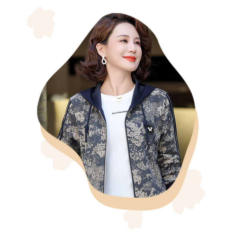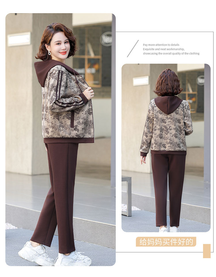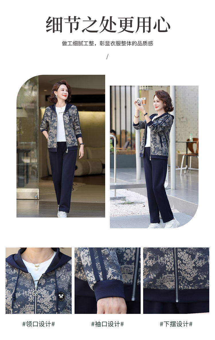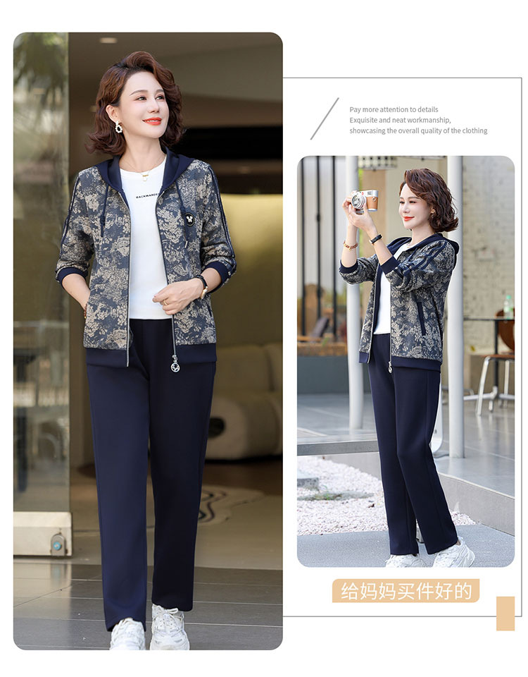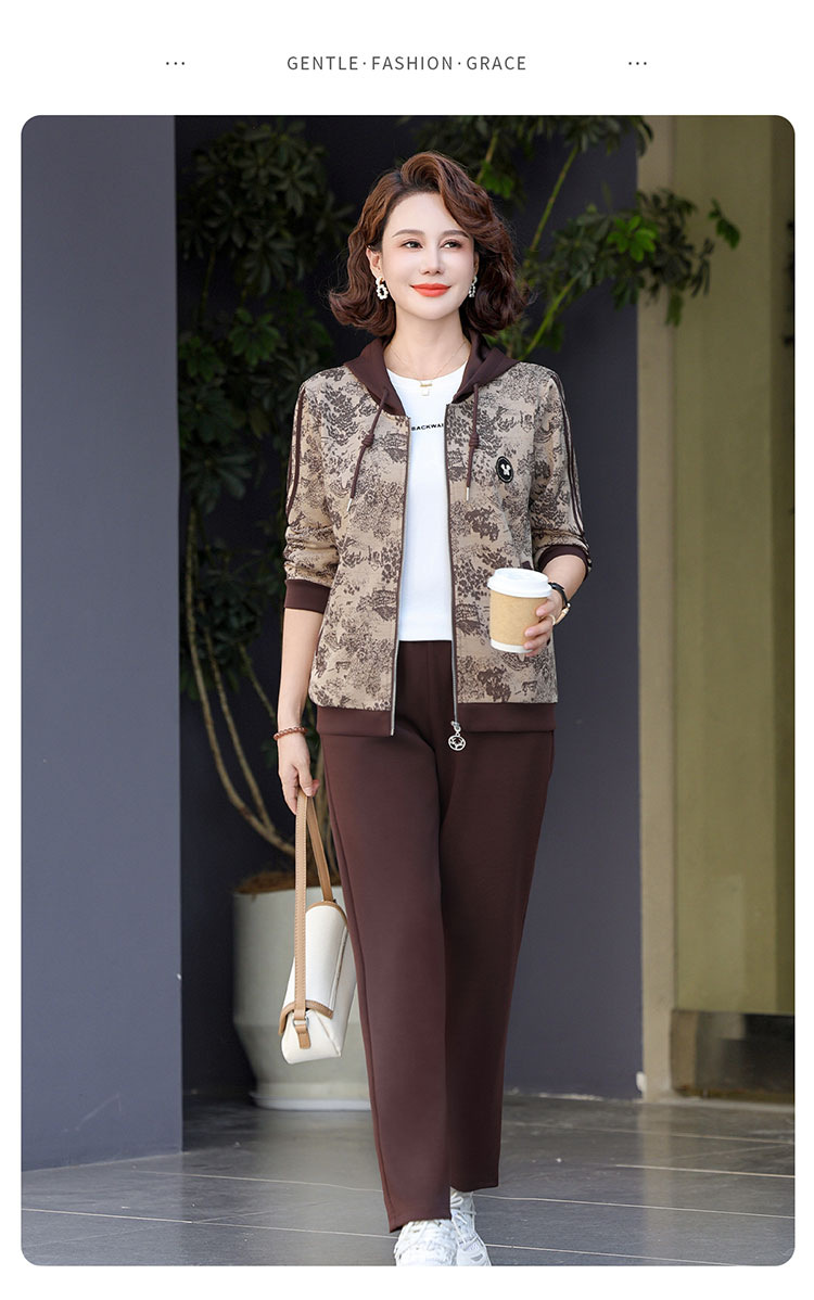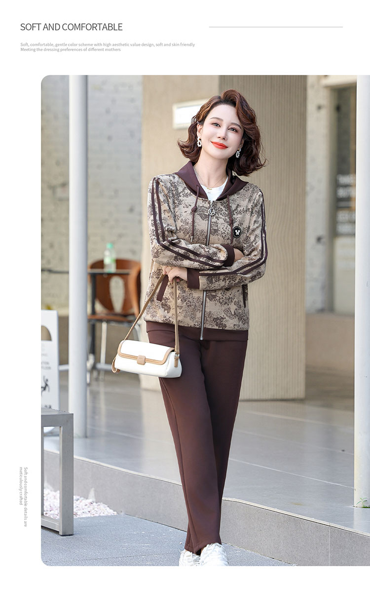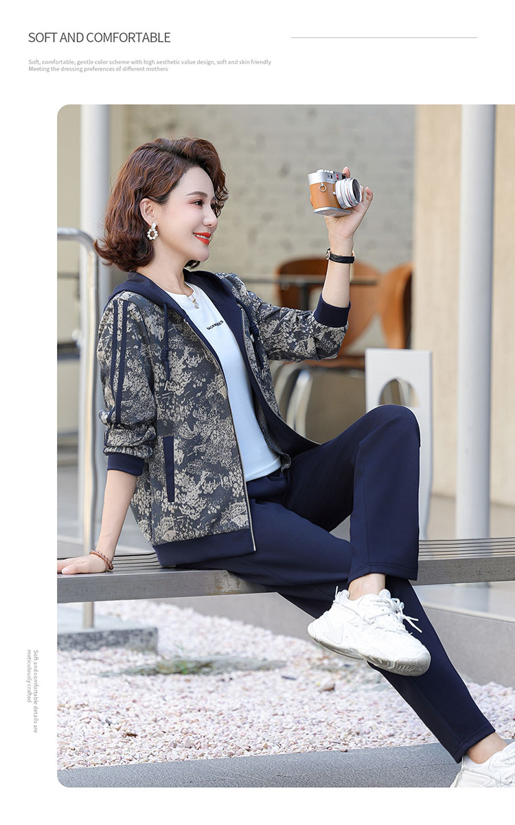 어머니의 운동복 코트 새로운 세트 중년 두건 중년 및 노인 여성 의류 봄과 가을 연령 감소 캐주얼 투피스 세트스토어 가기