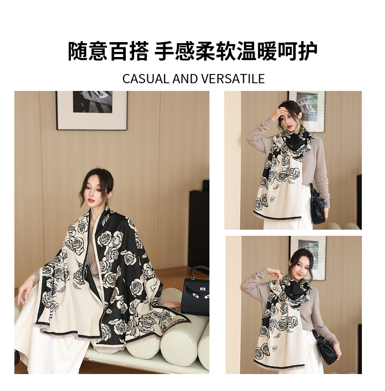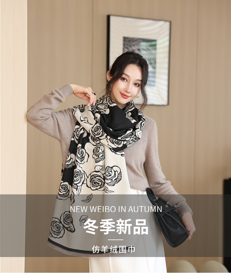 겨울 2024 새로운 스타일 스카프 여자 올 매치 따뜻한 고급 모방 캐시미어 로즈 스카프 양면 유행 목도리스토어 가기