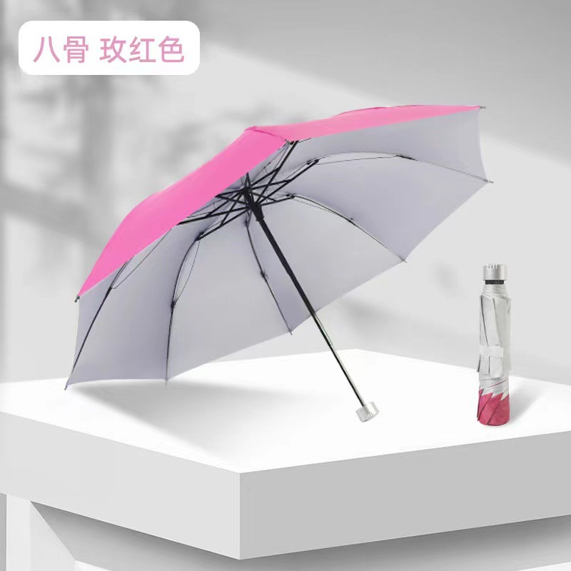 제조 업체 도매 방수 3 극 실버 플라스틱 우산 크리 에이 티브 양산 태양 우산 이중 목적 선물 광고 우산 로고 비 또는 빛
