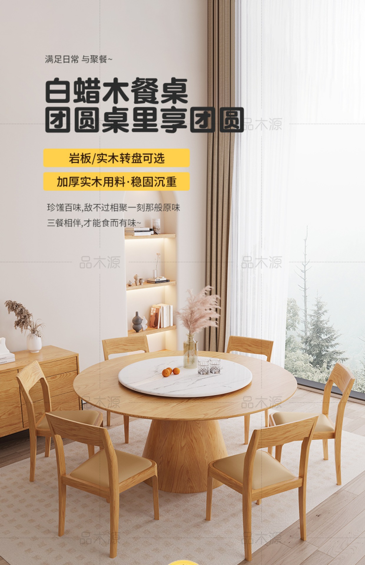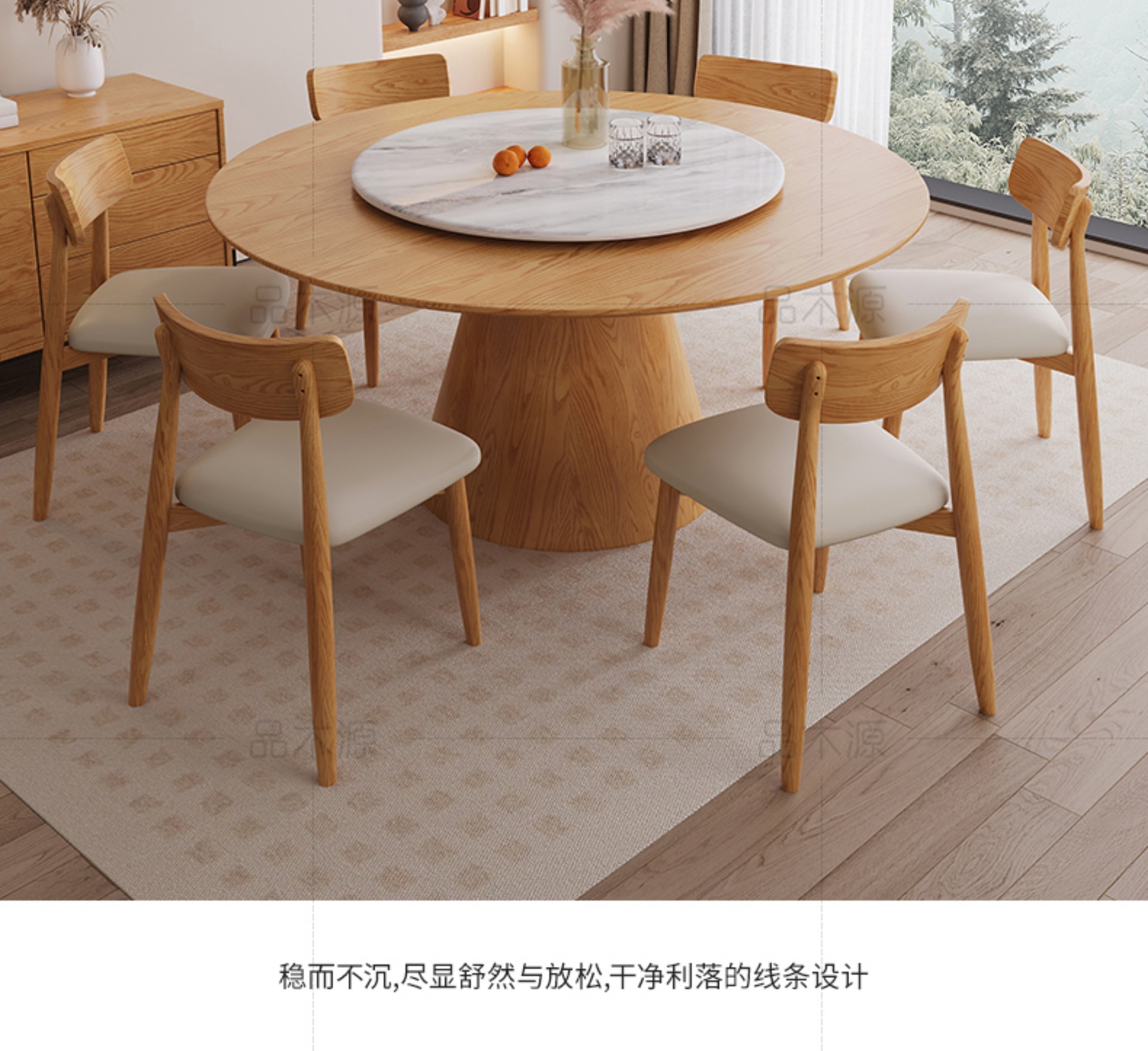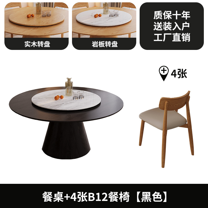 턴테이블 노르딕 간단한 모든 단단한 나무 식탁 및 의자 조합 사일런트 스타일의 작은 아파트 둥근 식탁스토어 가기