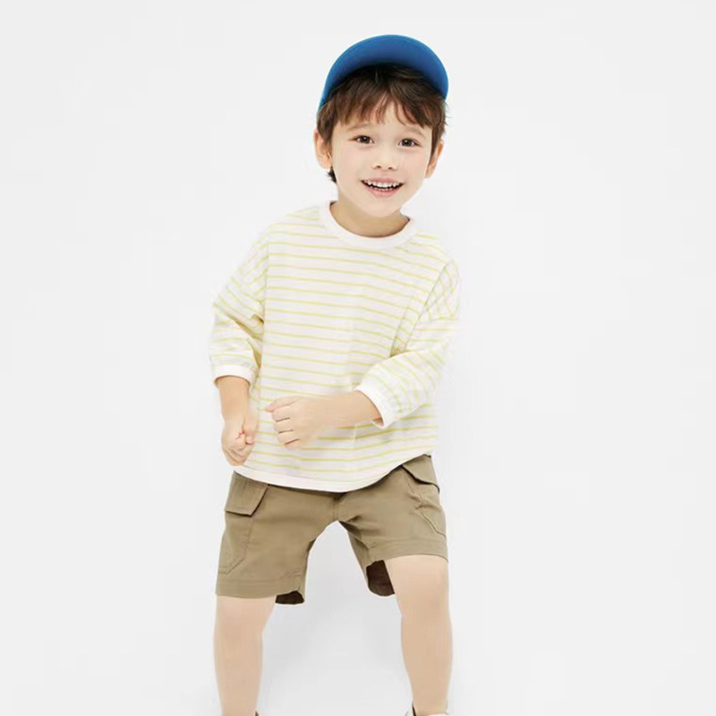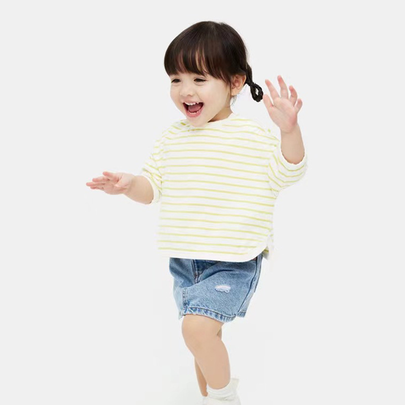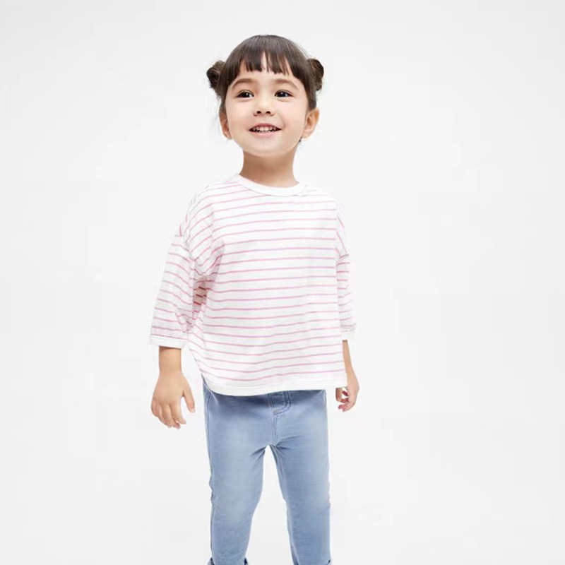 어린이 면 세븐-소매 티셔츠 봄과 가을 소년과 소녀 중-소매 셔츠 큰 어린이 새 줄무늬 기본-레이어 셔츠 티셔츠스토어 가기