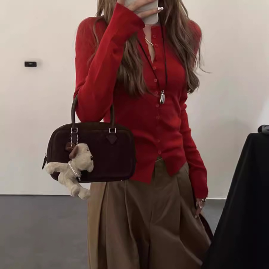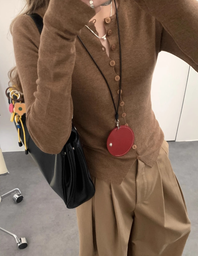 2025 신제품은 부드럽고 편안하며 멀티 버튼 디자인이 특징입니다! 여성용 라운드넥 니트 가디건 가을 슬리밍 탑스토어 가기