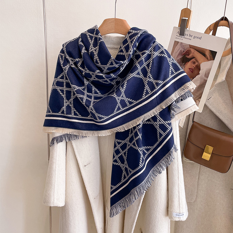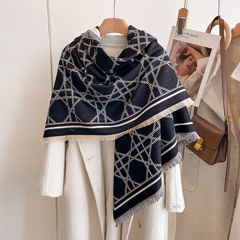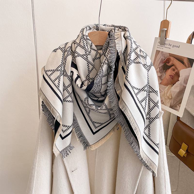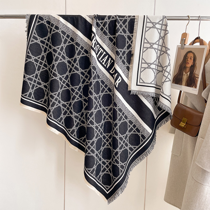 가을과 겨울 새로운 유럽과 미국 스타일의 문자 육각형 양면 여성용 캐시미어 따뜻한 큰 사각형 유행 인쇄 목도리