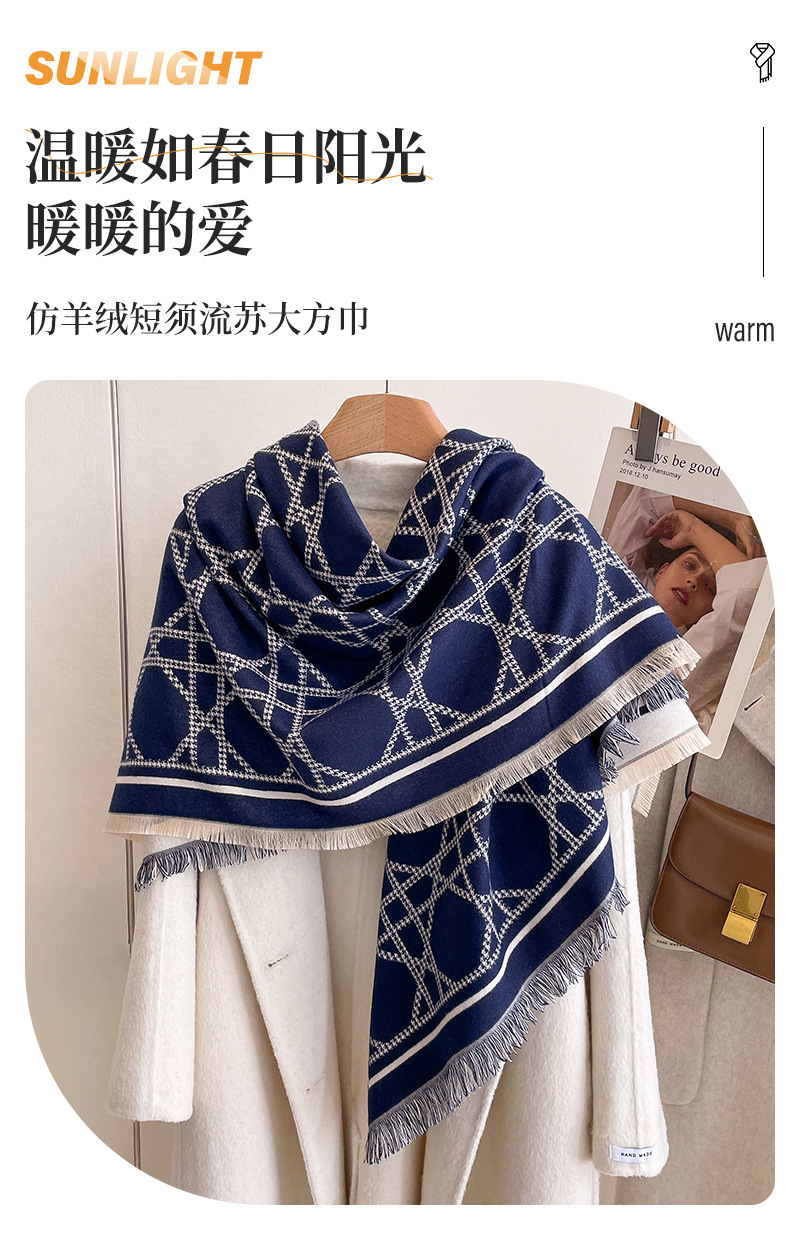가을과 겨울 새로운 유럽과 미국 스타일의 문자 육각형 양면 여성용 캐시미어 따뜻한 큰 사각형 유행 인쇄 목도리스토어 가기