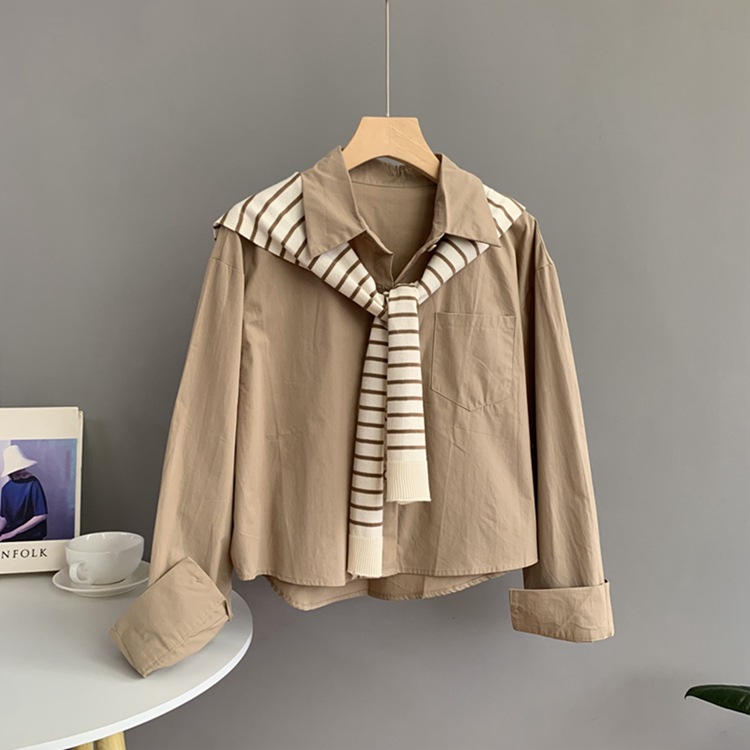 메이이시에 2024 가을 신상 한국 스타일 문예풍 심플 투피스 스트라이프 숄 여성 셔츠 세트스토어 가기
