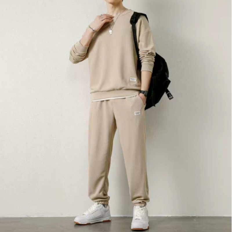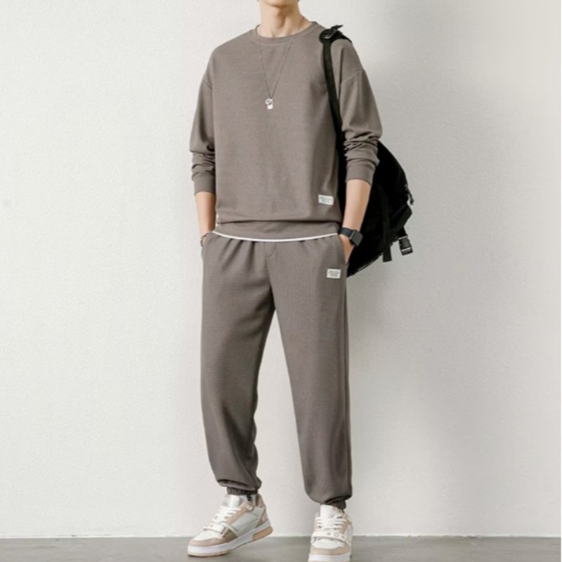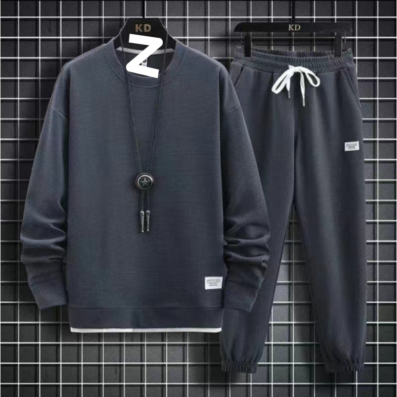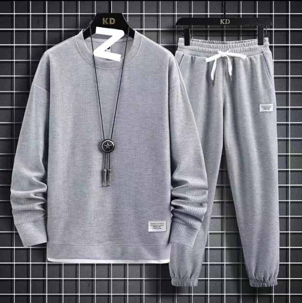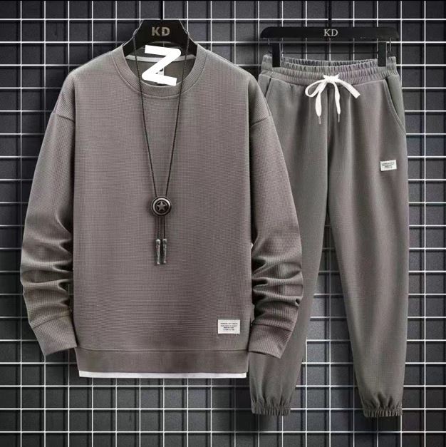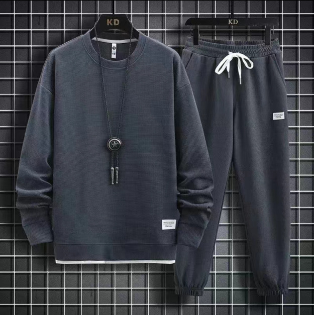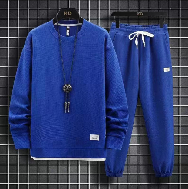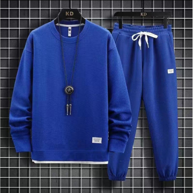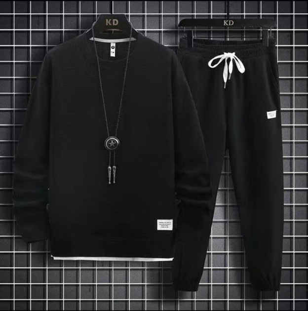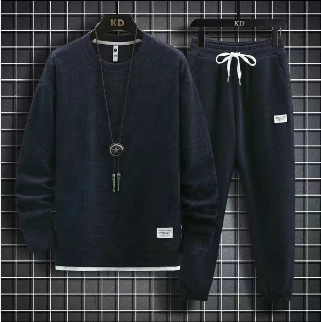 가을 세트 남자의 새로운 초대형 가짜 2 피스 스웨터 바지 스포츠 캐주얼 투피스 세트스토어 가기