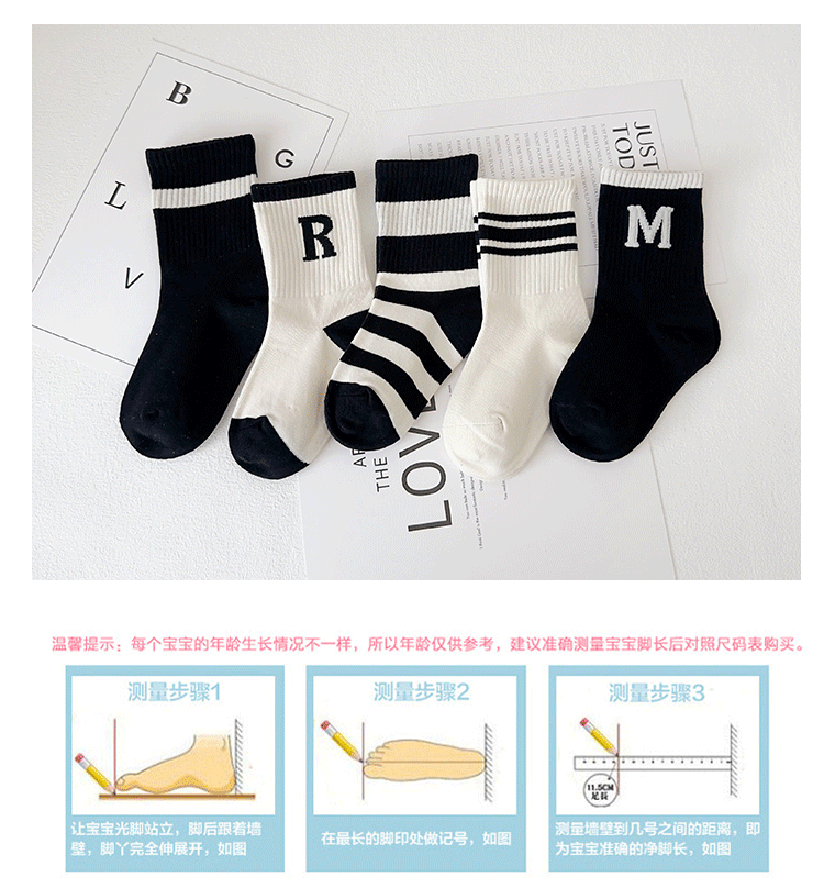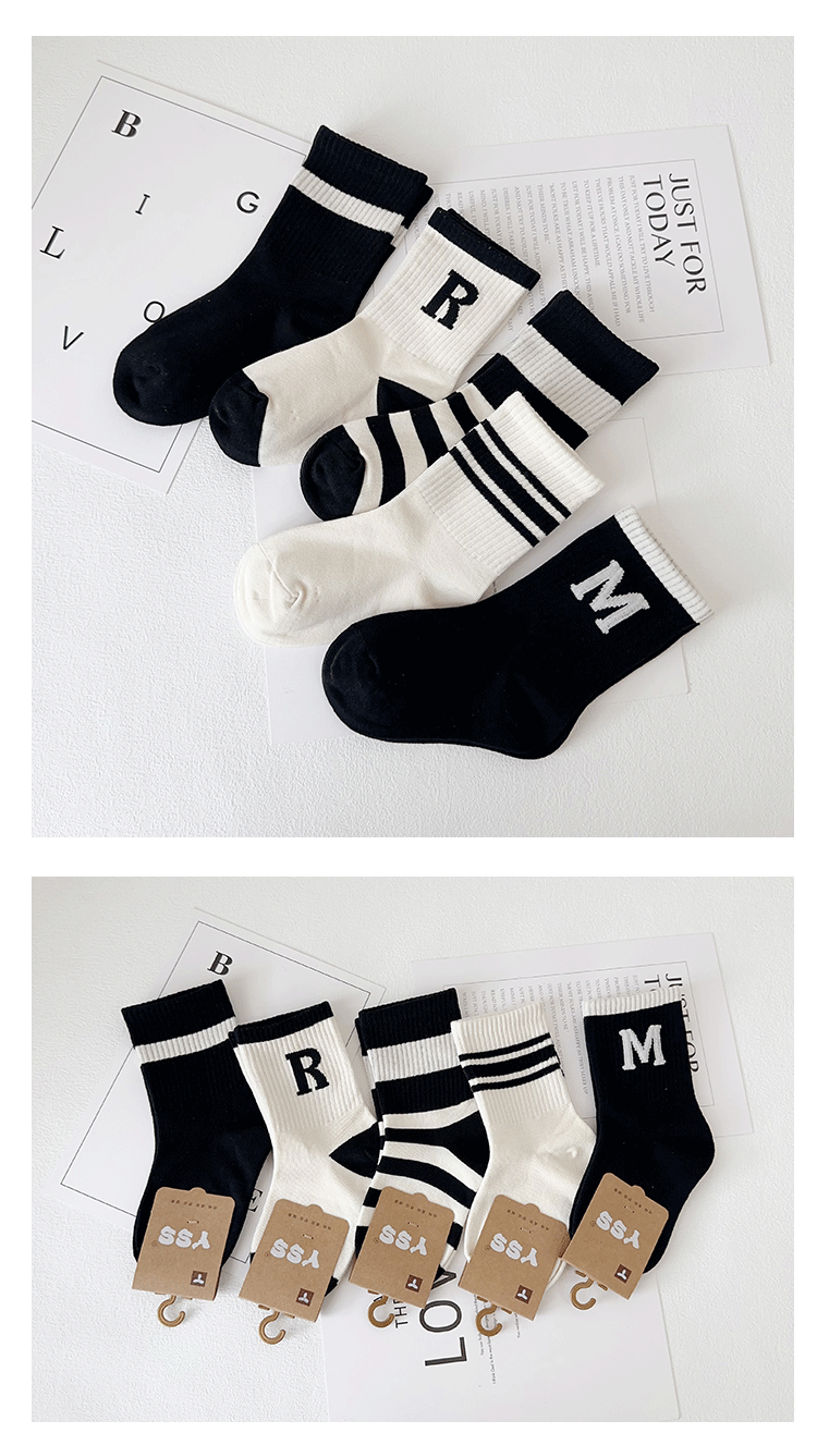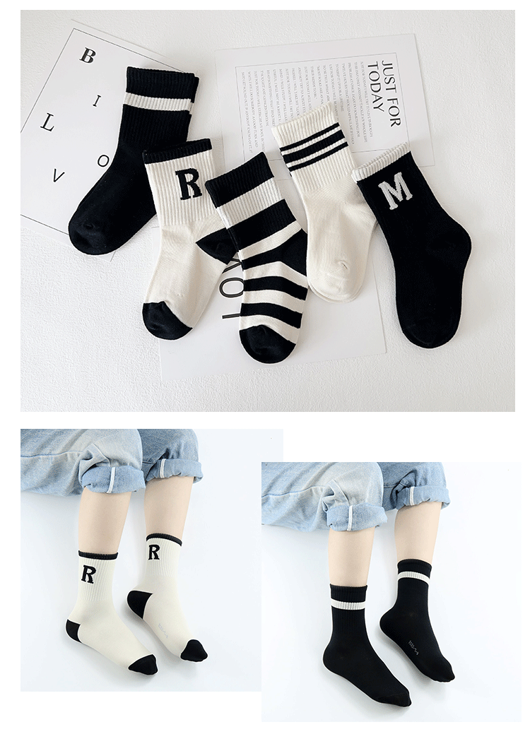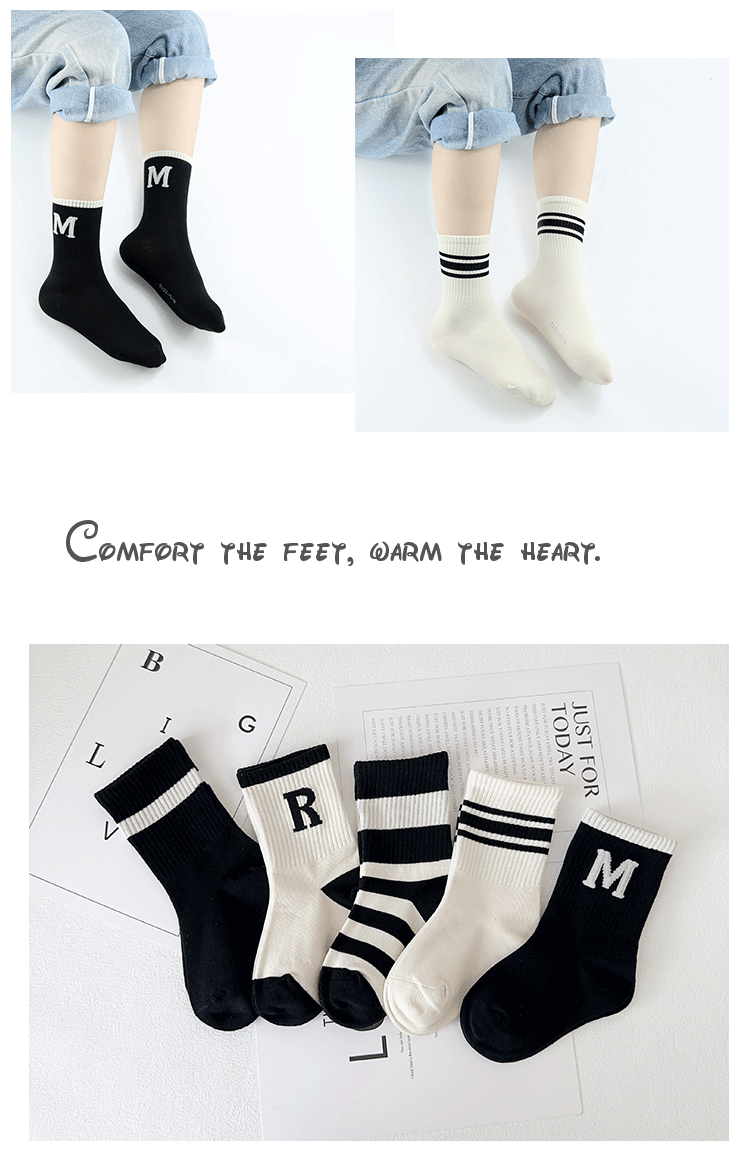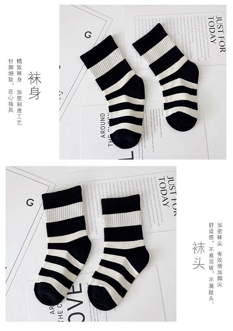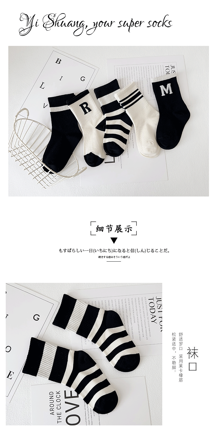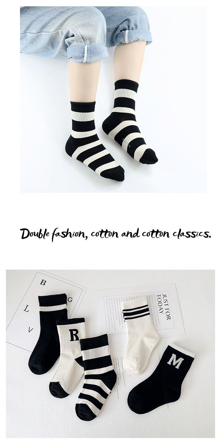 이쌍 어린이 양말 가을과 겨울 새 한국식 편지 중간 튜브 양말 빗 코튼 블랙 및 화이트 스트라이프 스포츠 양말 뼈없는스토어 가기