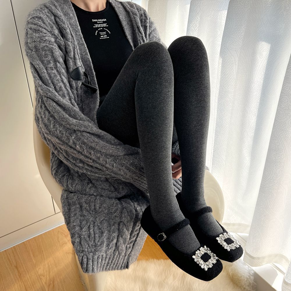 가을과 겨울 새로운 올 매치 다크 그레이 수직 스트라이프 레깅스 슬리밍 마이크로 압력 애쉬 팬티 스타킹 블랙 팬티 스타킹 여성스토어 가기