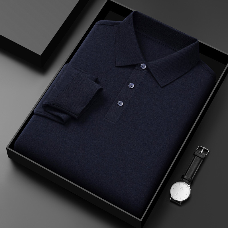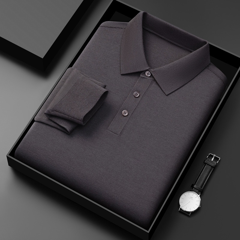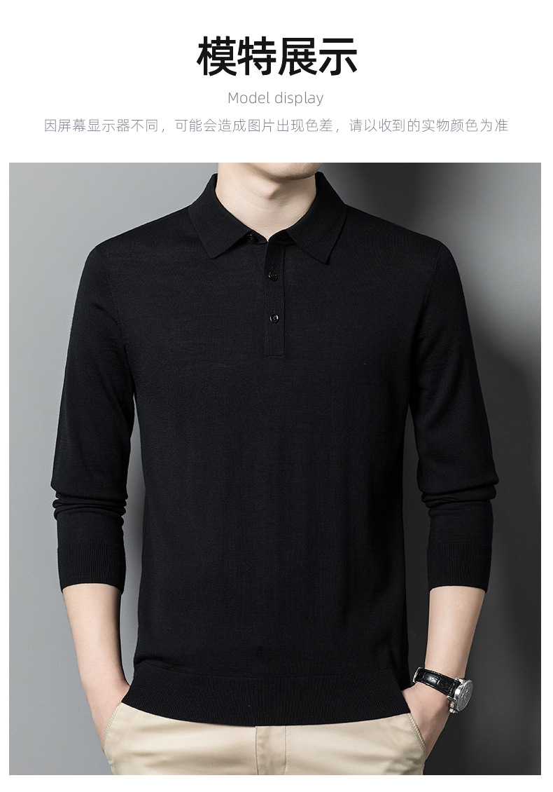 [80 호주 양모] 100 개의 Worsted 스웨터 남성용 얇은 옷깃 폴로 셔츠 꼭 맞는베이스 니트 스웨터