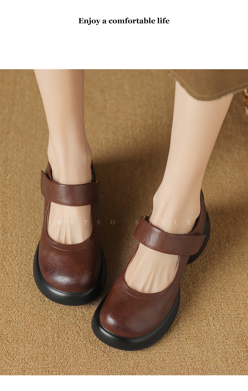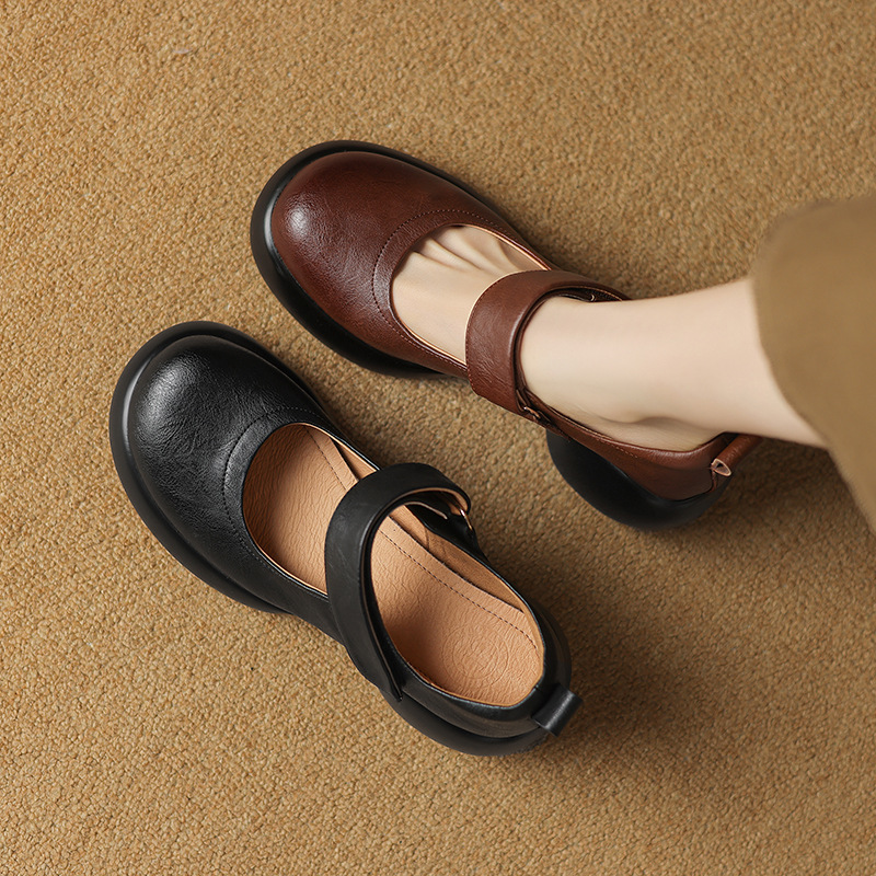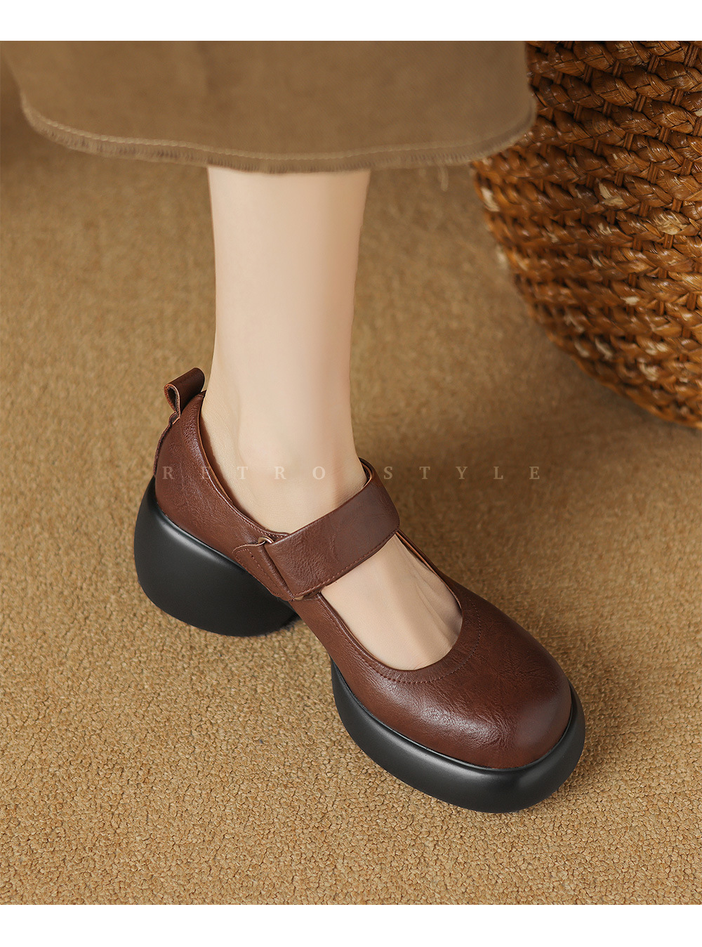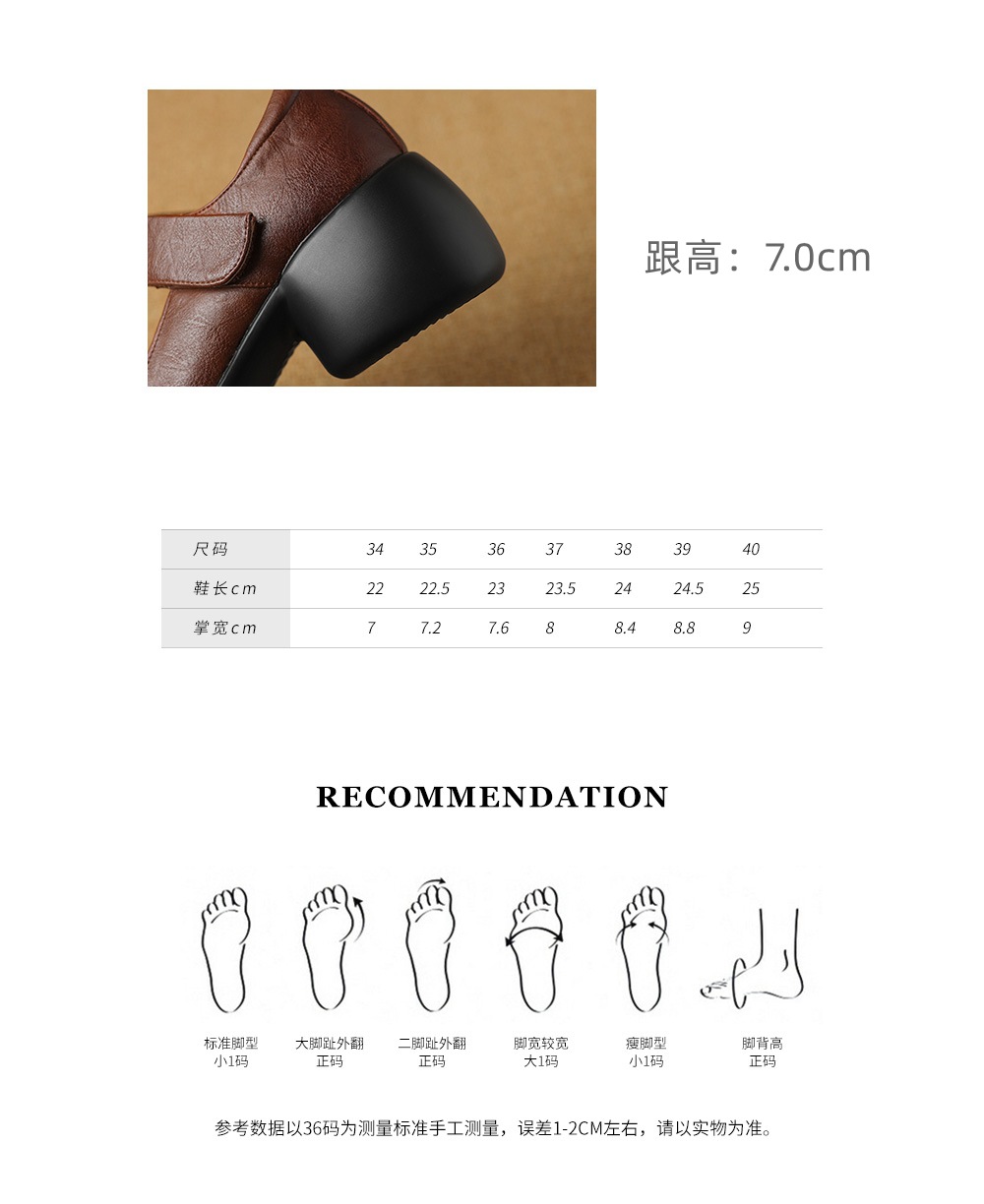 2024 새로운 7cm 레트로 메리 제인 작은 가죽 신발 벨크로 버클이 달린 여성용 두꺼운 여름 및 가을 싱글 레이어 신발스토어 가기