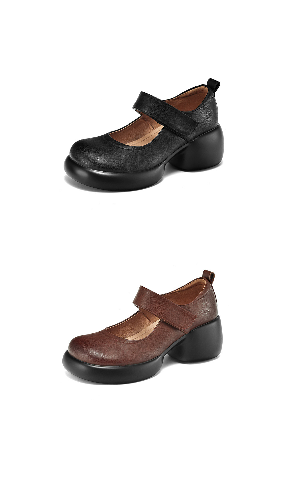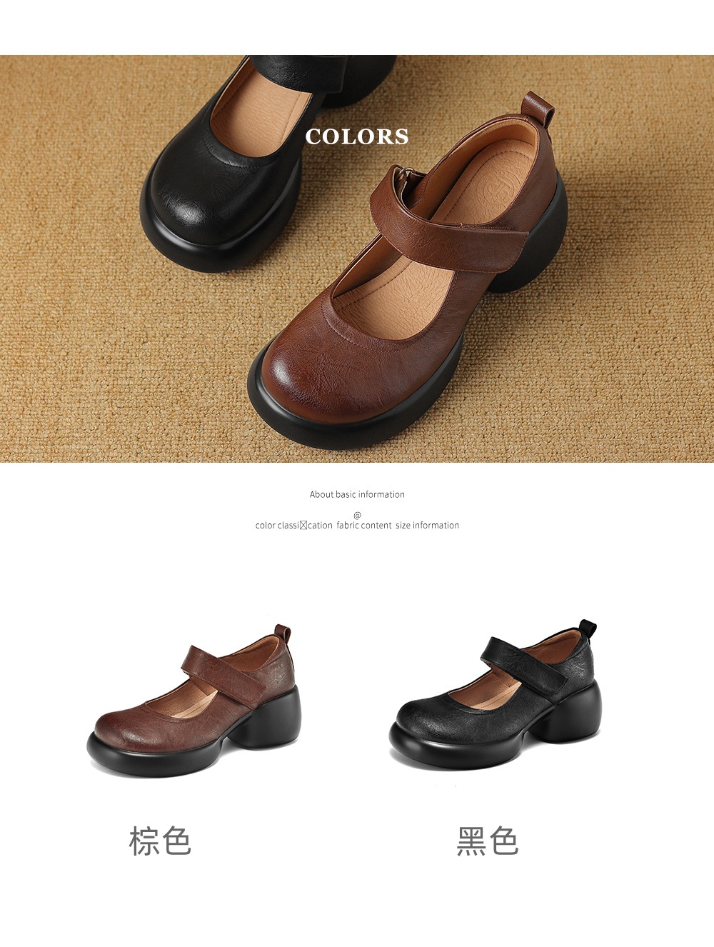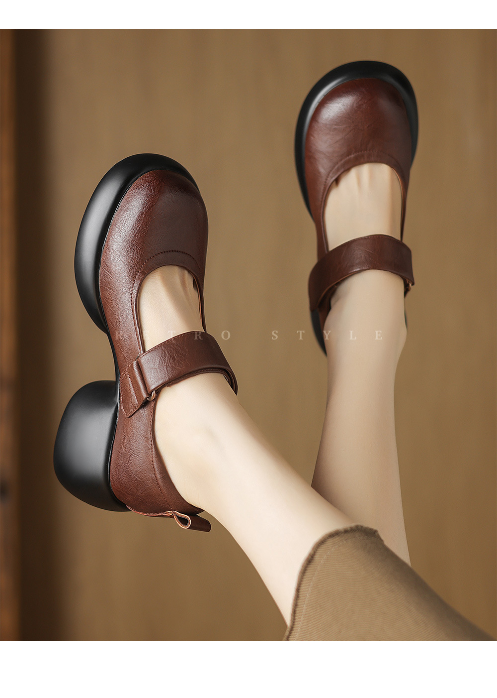 2024 새로운 7cm 레트로 메리 제인 작은 가죽 신발 벨크로 버클이 달린 여성용 두꺼운 여름 및 가을 싱글 레이어 신발스토어 가기
