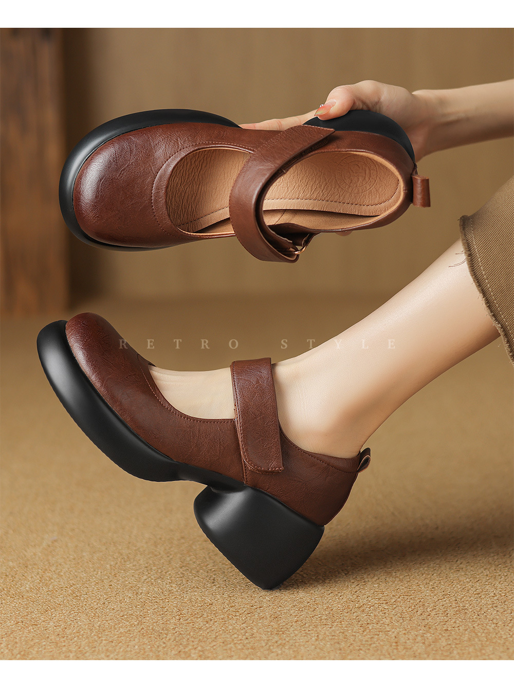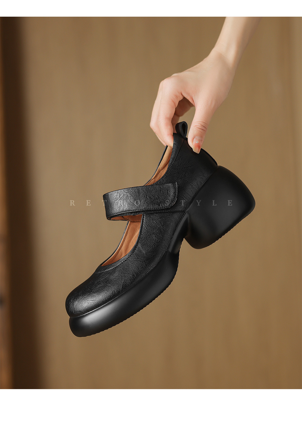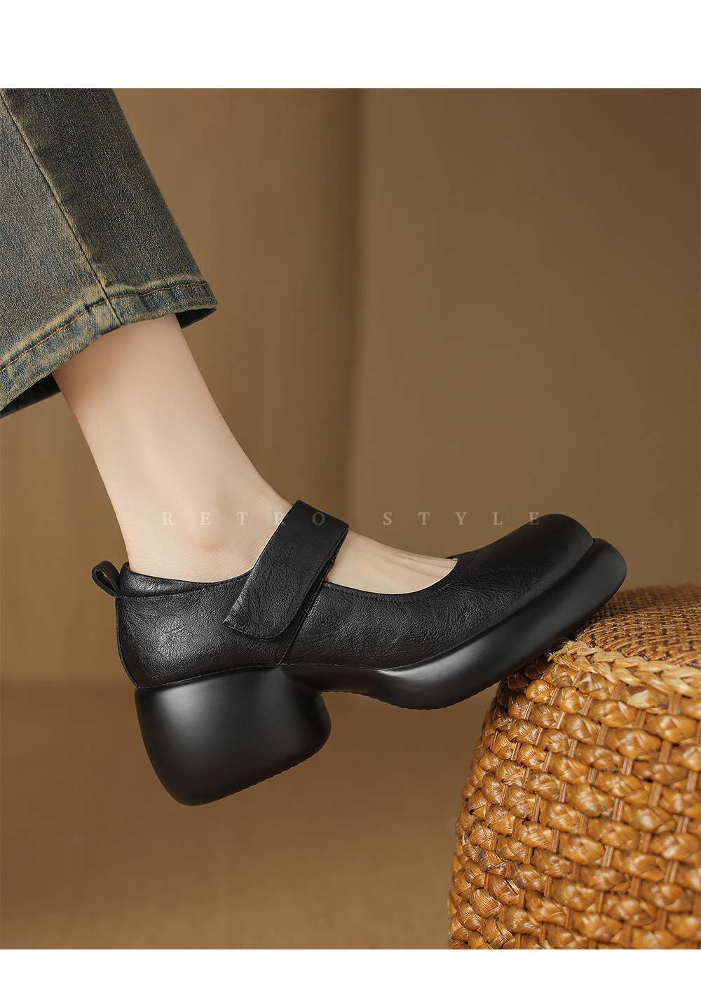 2024 새로운 7cm 레트로 메리 제인 작은 가죽 신발 벨크로 버클이 달린 여성용 두꺼운 여름 및 가을 싱글 레이어 신발