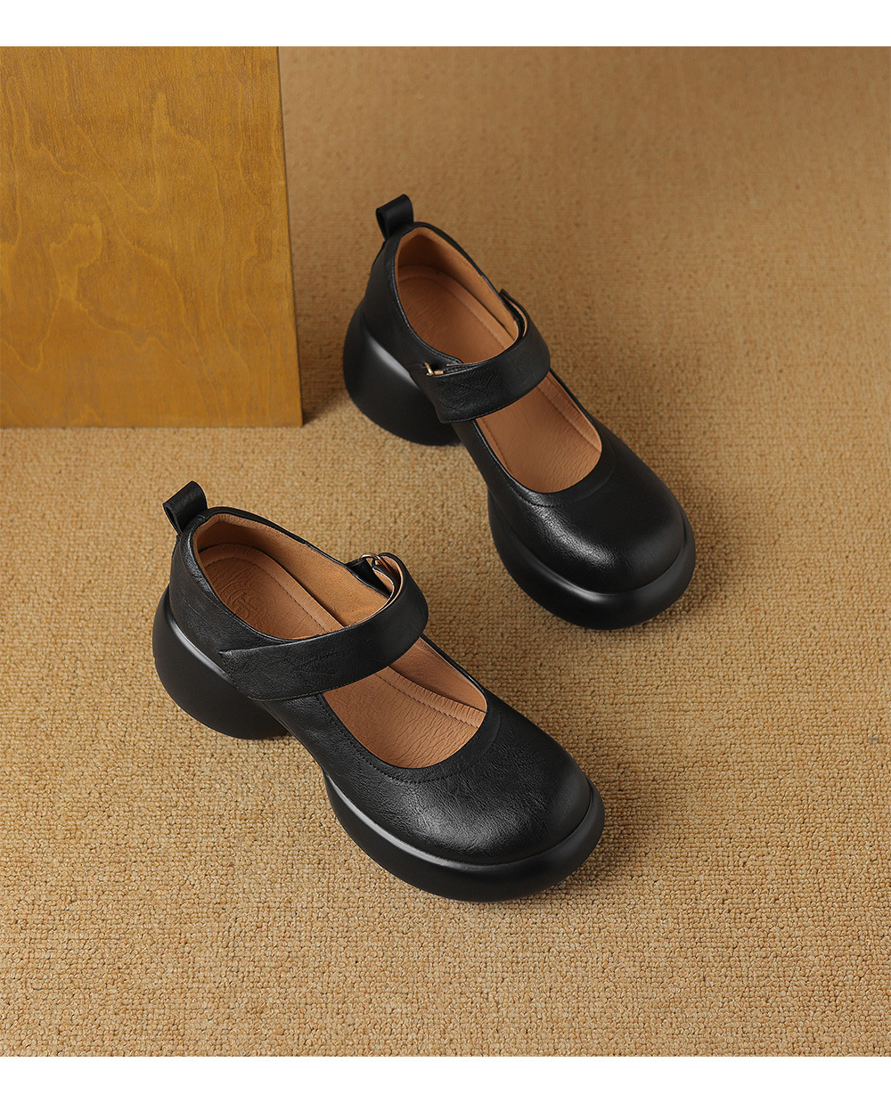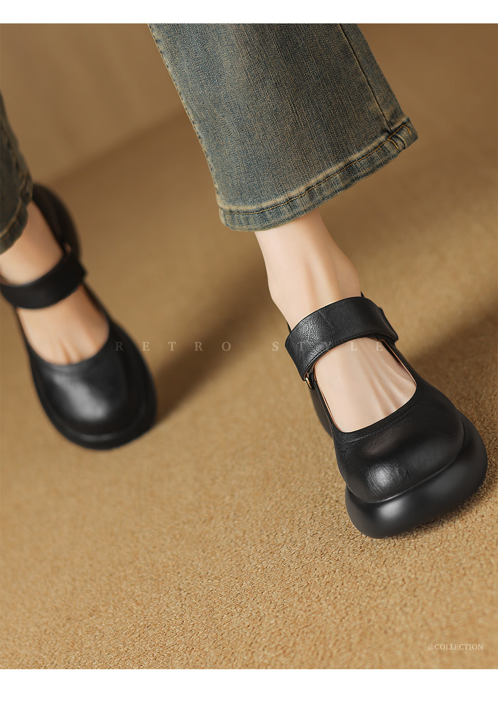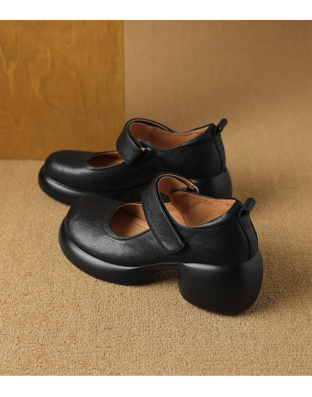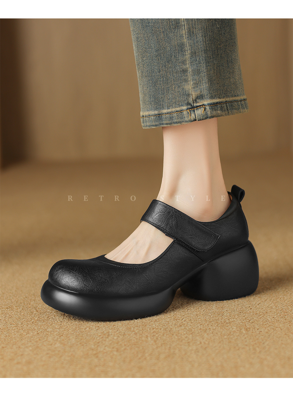 2024 새로운 7cm 레트로 메리 제인 작은 가죽 신발 벨크로 버클이 달린 여성용 두꺼운 여름 및 가을 싱글 레이어 신발