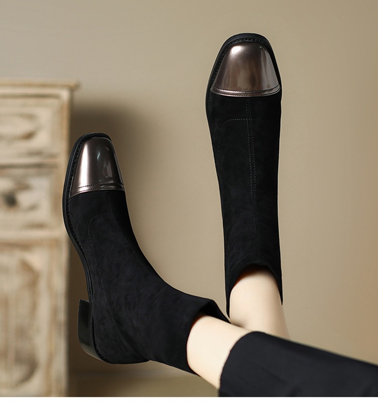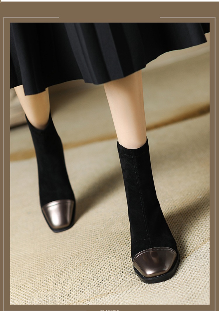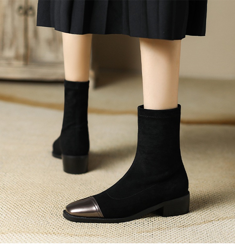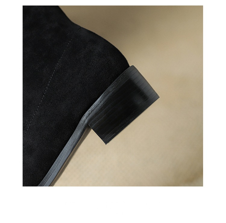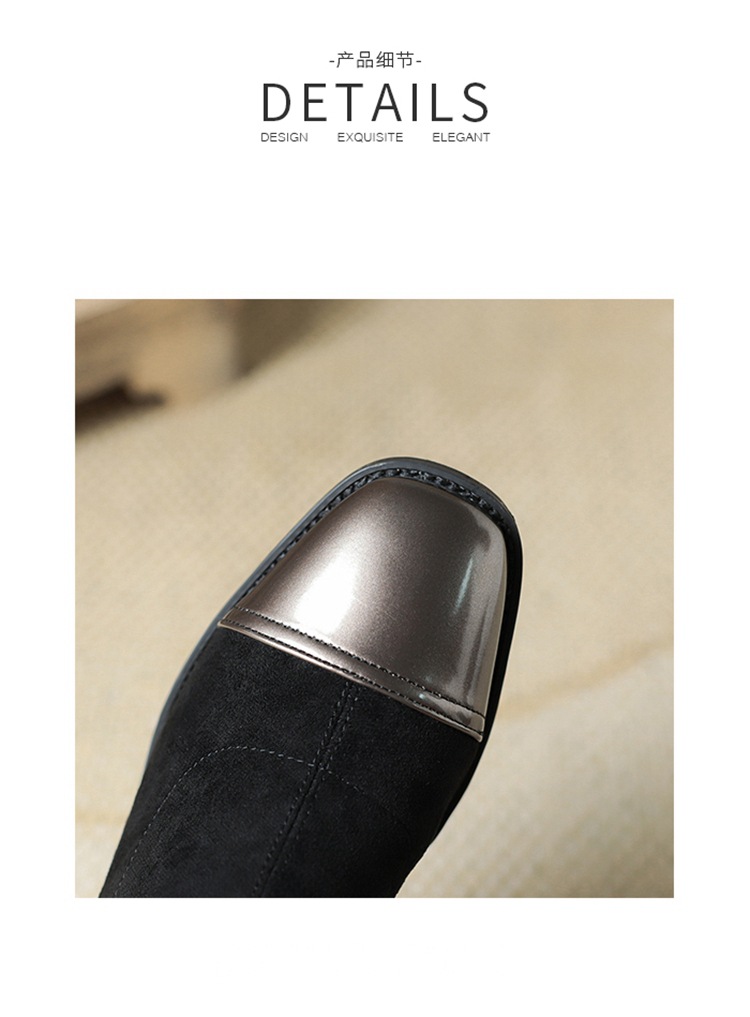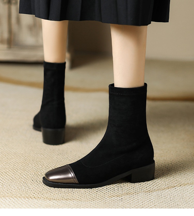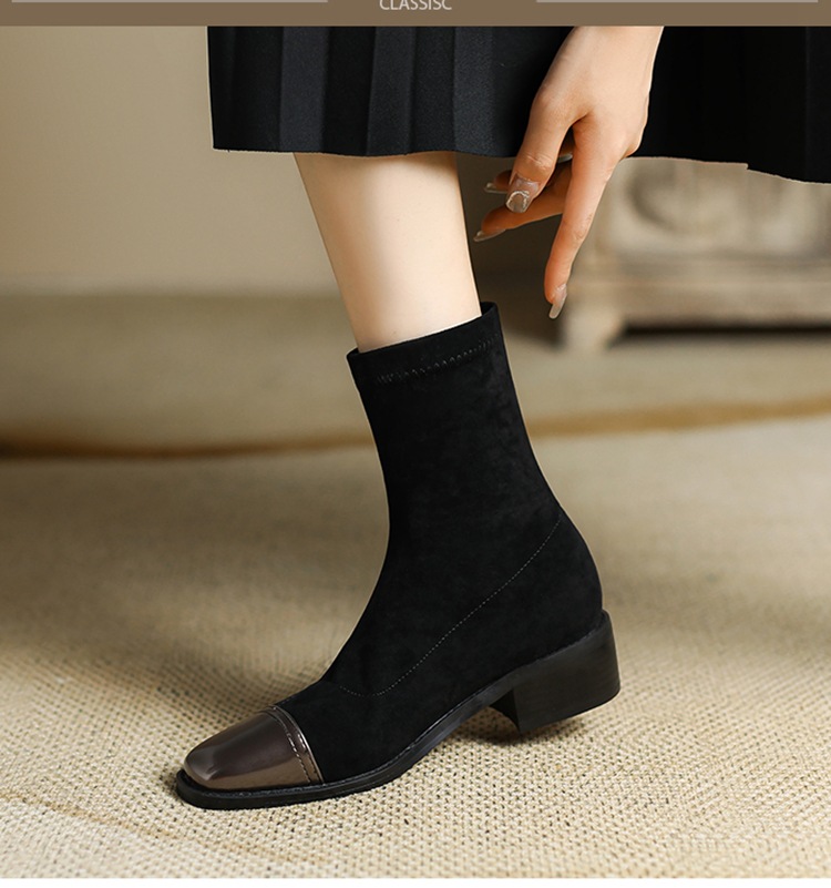32-43 레트로 두꺼운 힐 부츠 여성용 가을 새 광장 헤드 스티칭 스트레치 얇은 부츠 미드 힐 대형 부츠스토어 가기