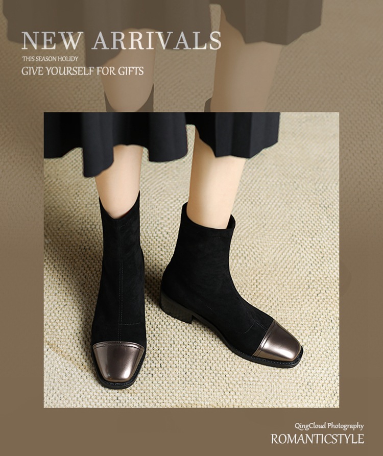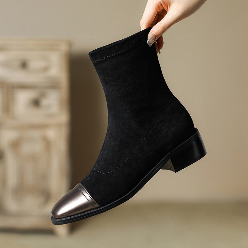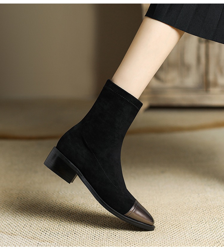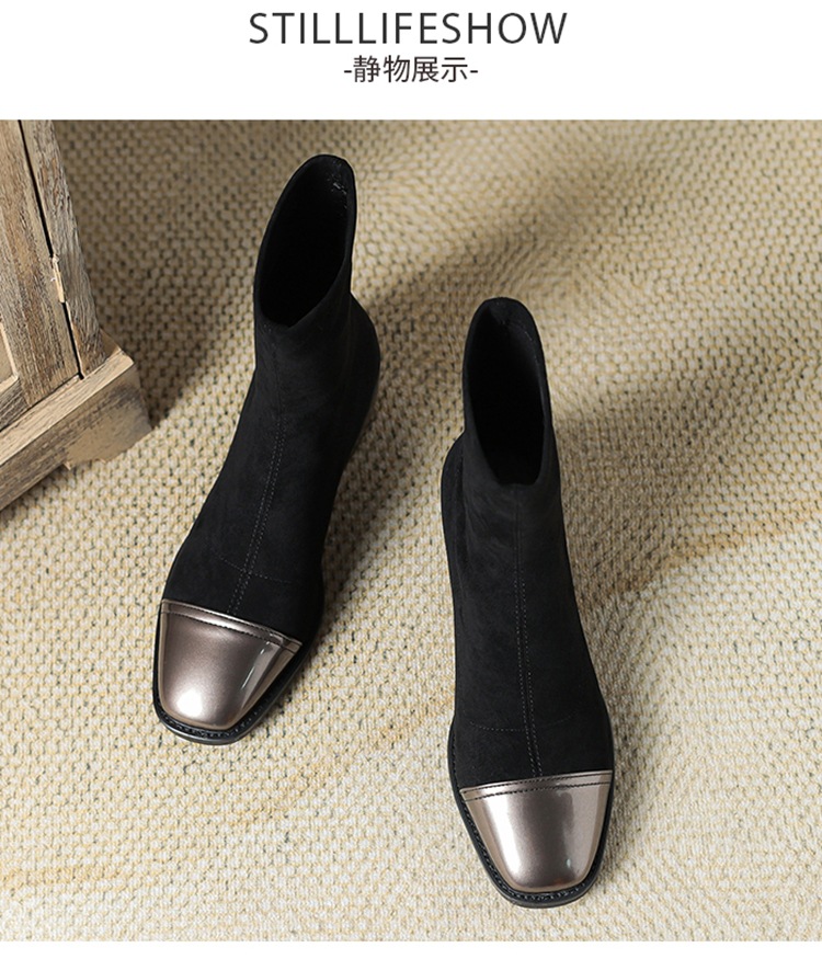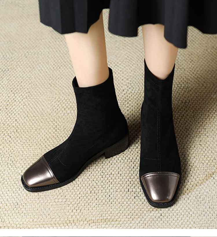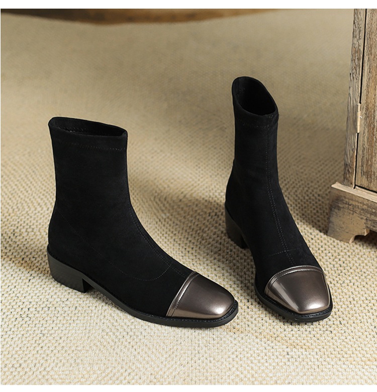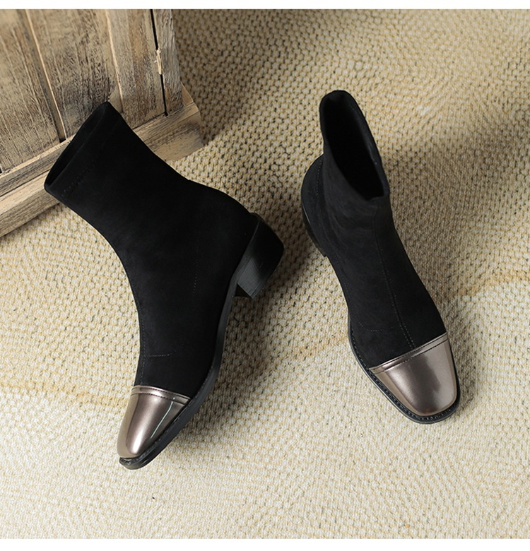 32-43 레트로 두꺼운 힐 부츠 여성용 가을 새 광장 헤드 스티칭 스트레치 얇은 부츠 미드 힐 대형 부츠스토어 가기