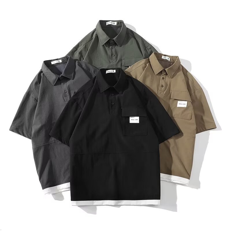 2024 미국 캐주얼 패션 반팔 폴로 셔츠 남자의 여름 얇은 유행 브랜드 작업 셔츠 티셔츠 반소매 탑