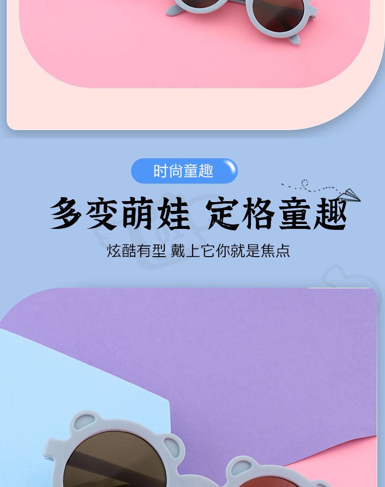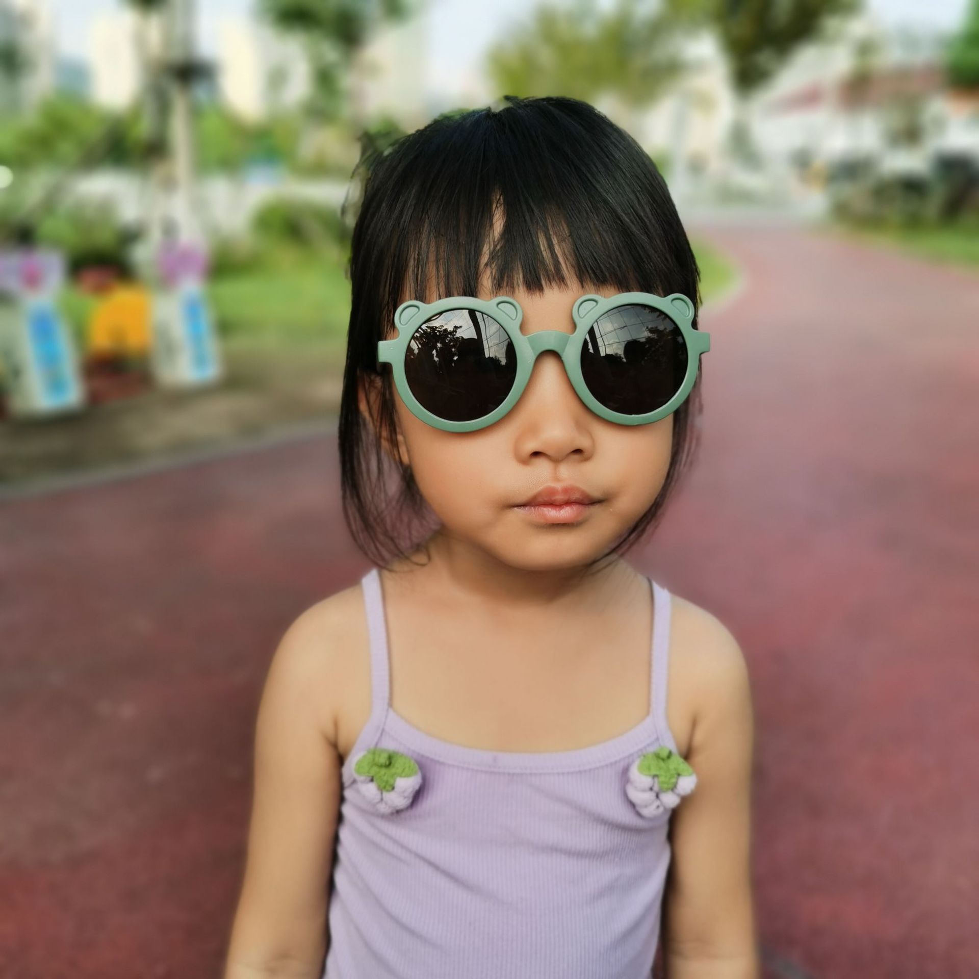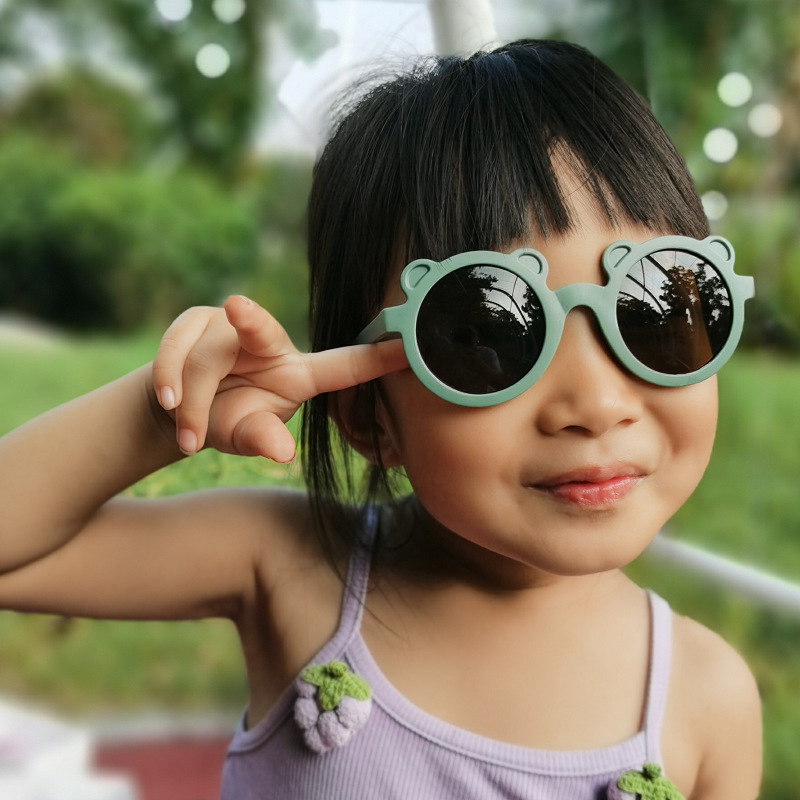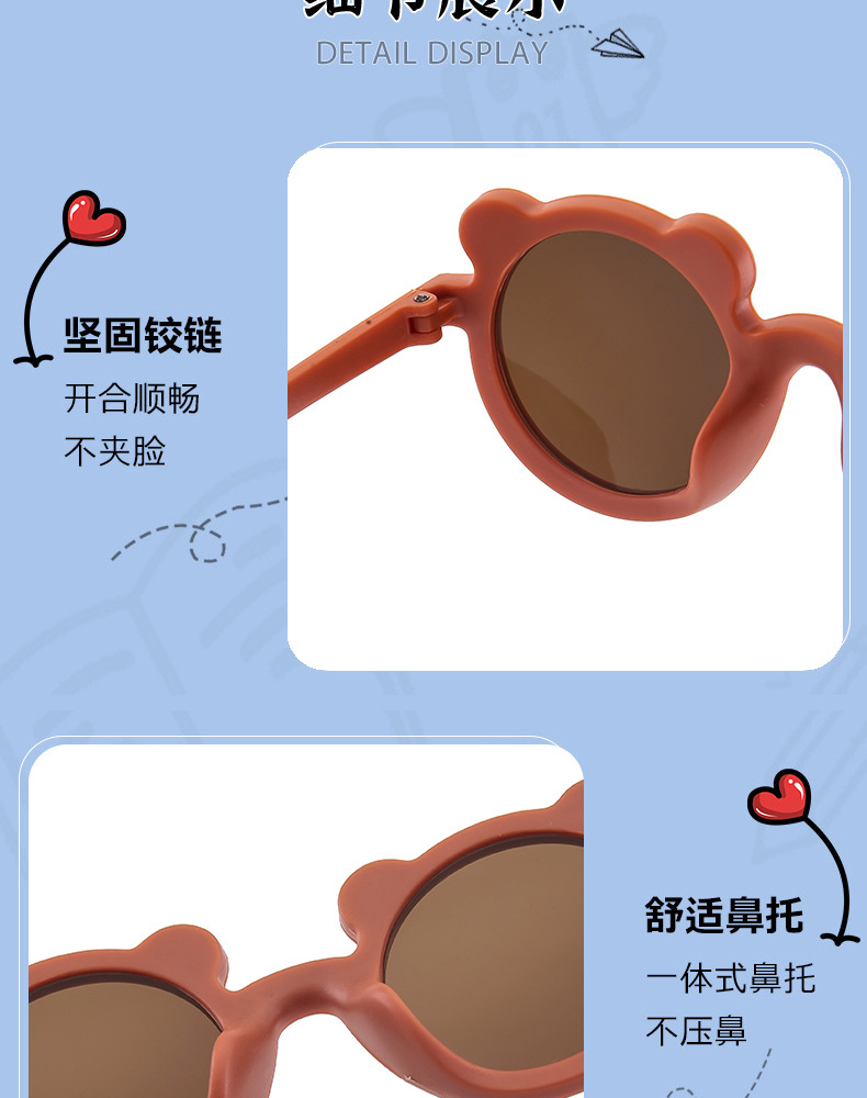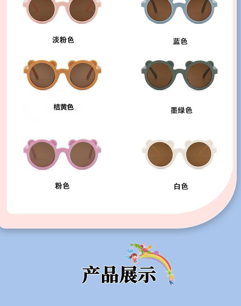 TEMU小熊磨砂网红可爱男女小孩墨镜儿童太阳镜萌系圆框花瓣眼镜