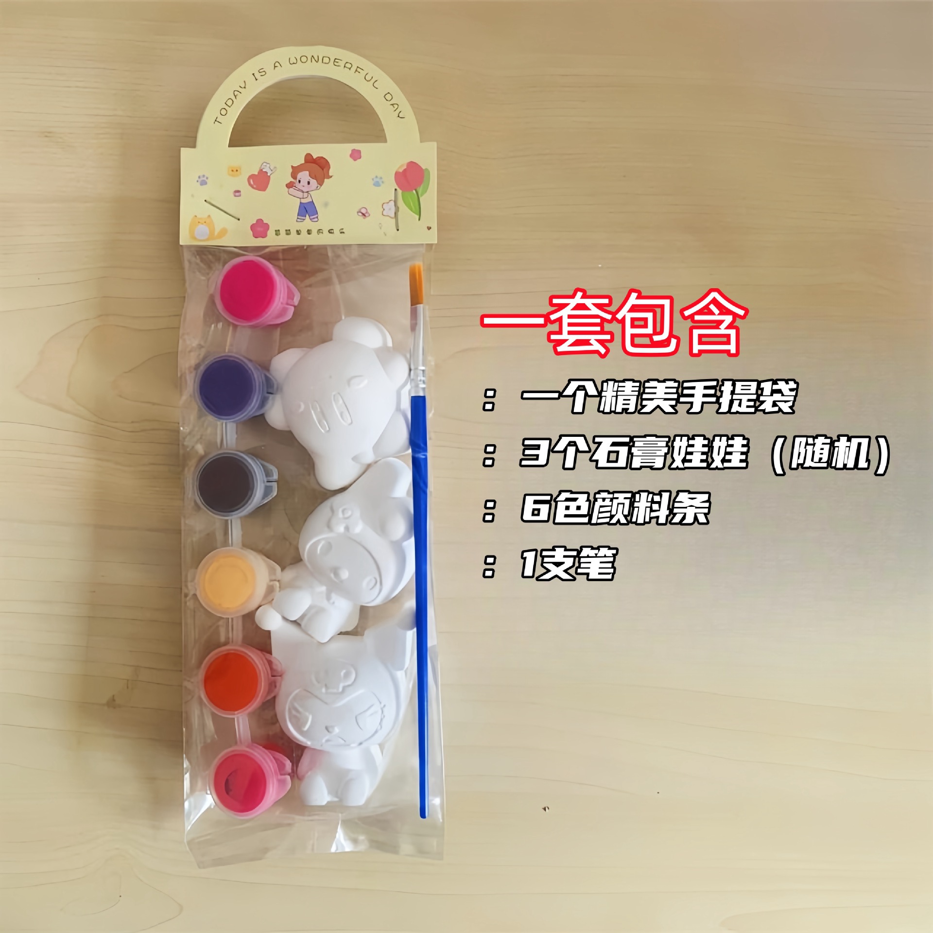 • 인형 1개 + 페인트 3가지 색상 + 펜이 담긴 가방