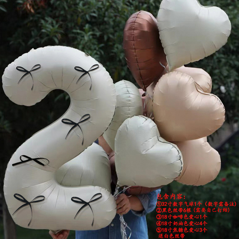 Ins 인터넷 레드 크림 빅 디지털 풍선 활 알루미늄 필름 발레 바람 년 어린이 생일 파티 사진