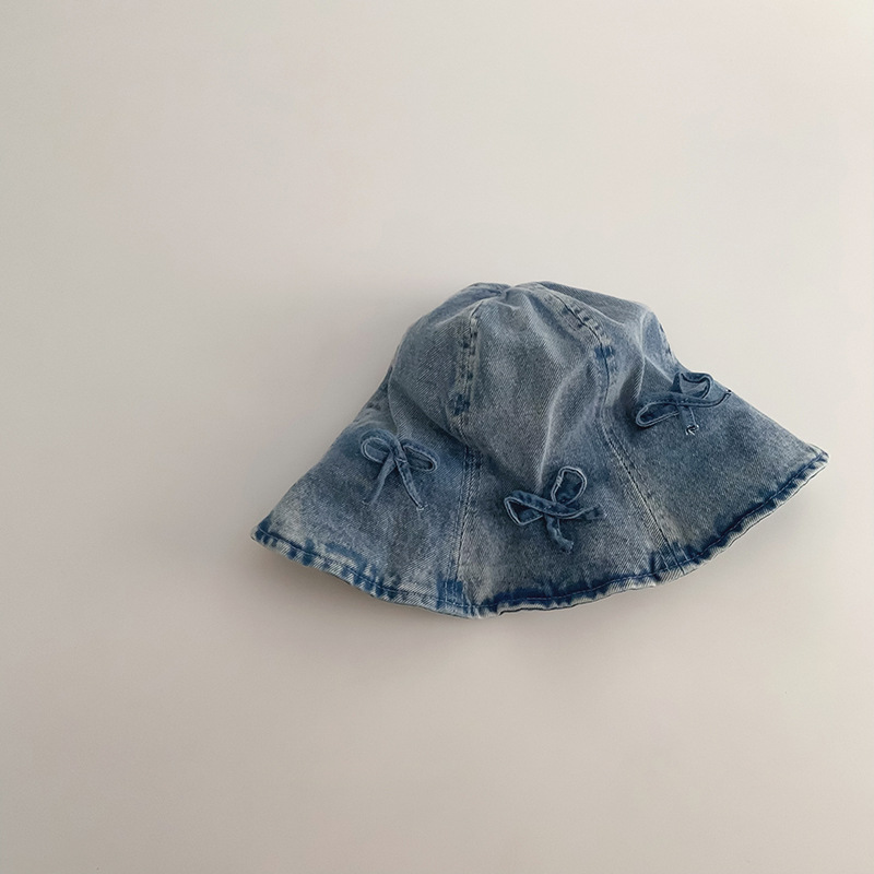 이판 한국 아동용 모자 2025 가을 겨울 신상 워싱 레트로 데님 리본 아기 벙거지 모자스토어 가기