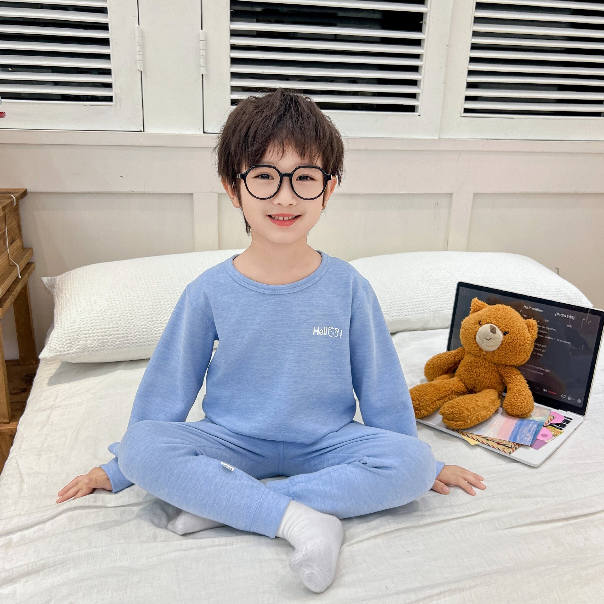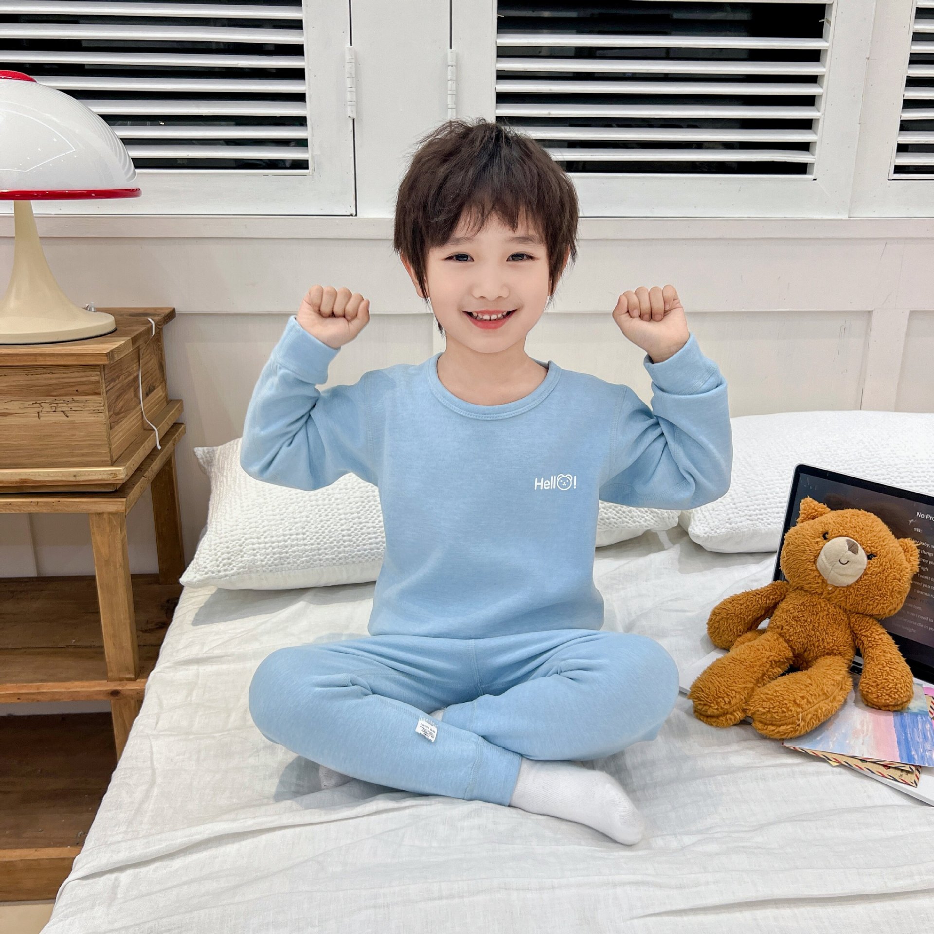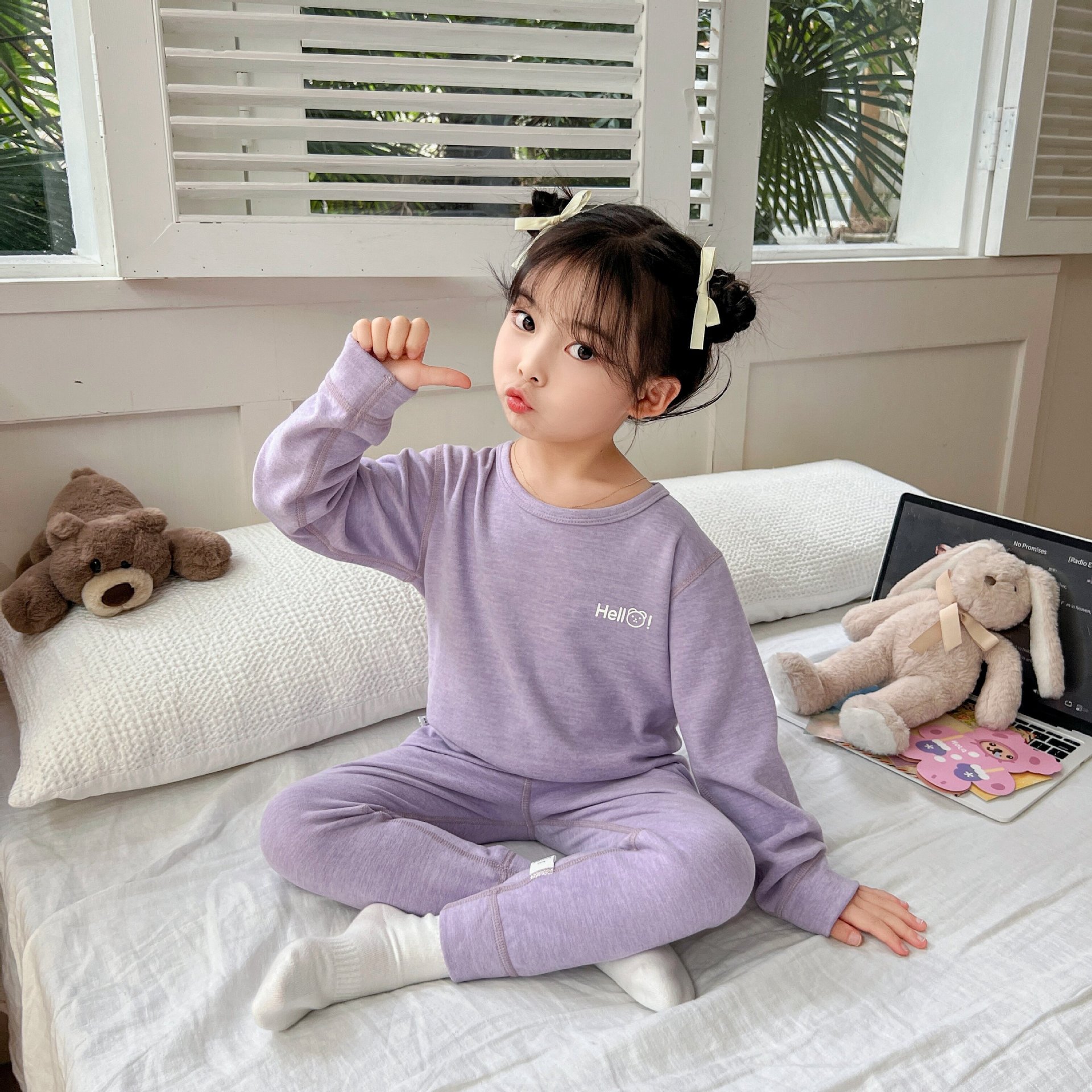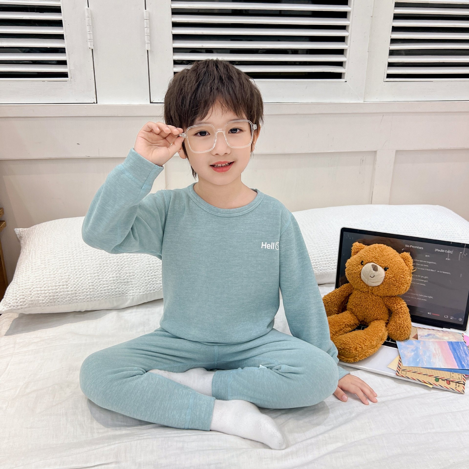 2024 가을과 겨울 어린이 울 실크 홈 의류 세트 아기 뼈없는 속옷 홈 세트 도매 및 소매스토어 가기
