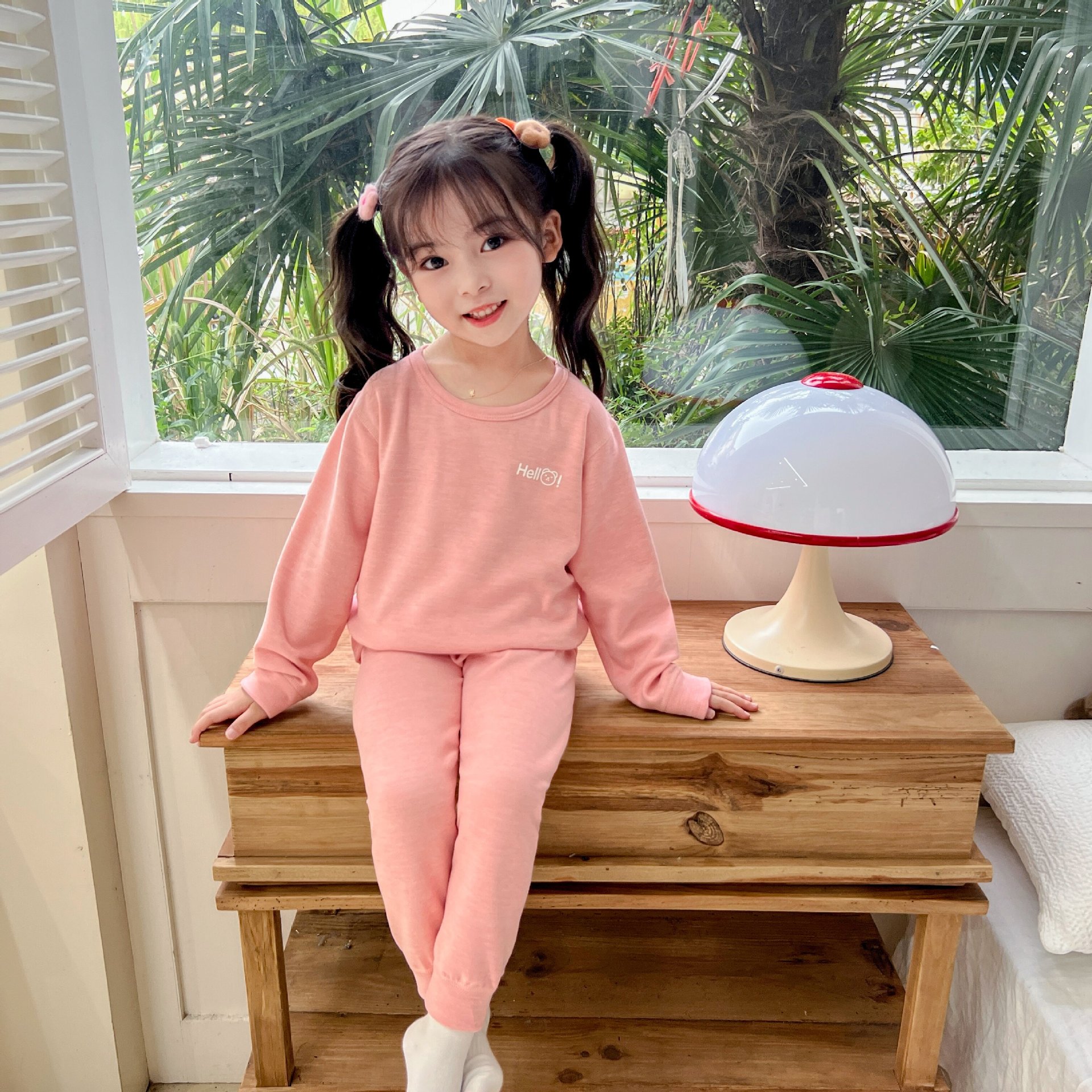 2024 가을과 겨울 어린이 울 실크 홈 의류 세트 아기 뼈없는 속옷 홈 세트 도매 및 소매