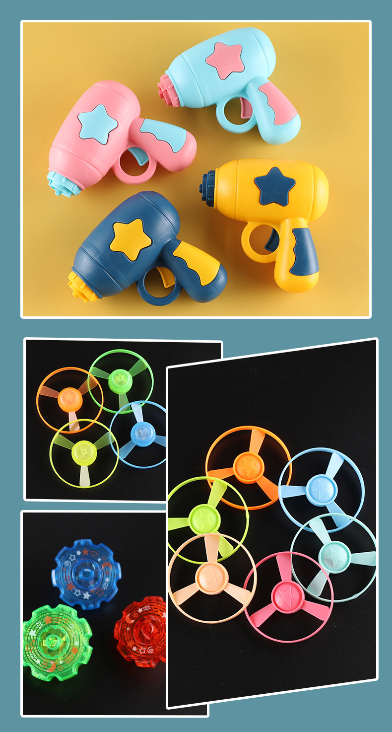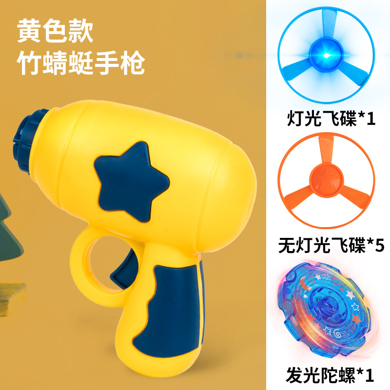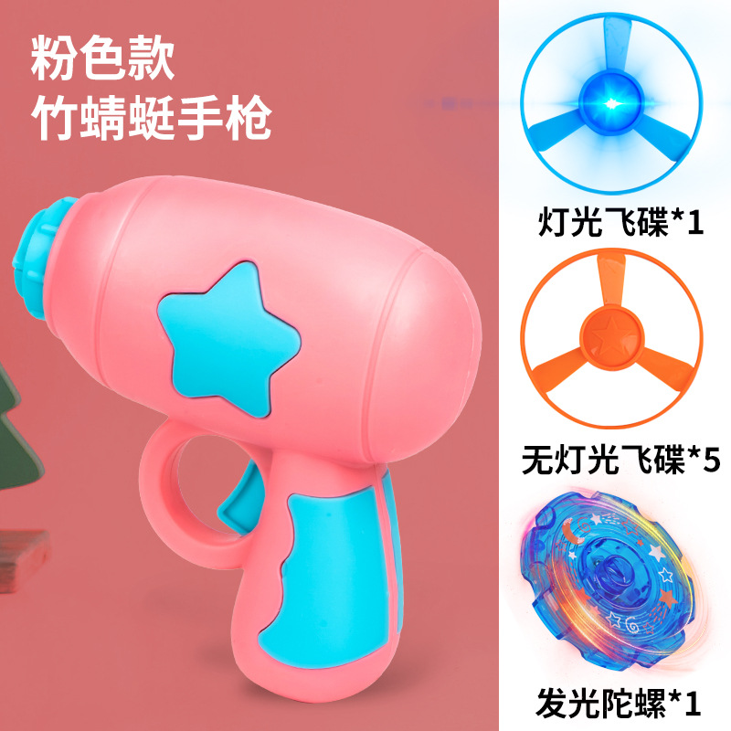 어린이 장난감 비행 접시 총 비행 플래시 자이로 야외 비행 대나무 잠자리 장난감 빛나는 프리즈 비 야시장 마구간