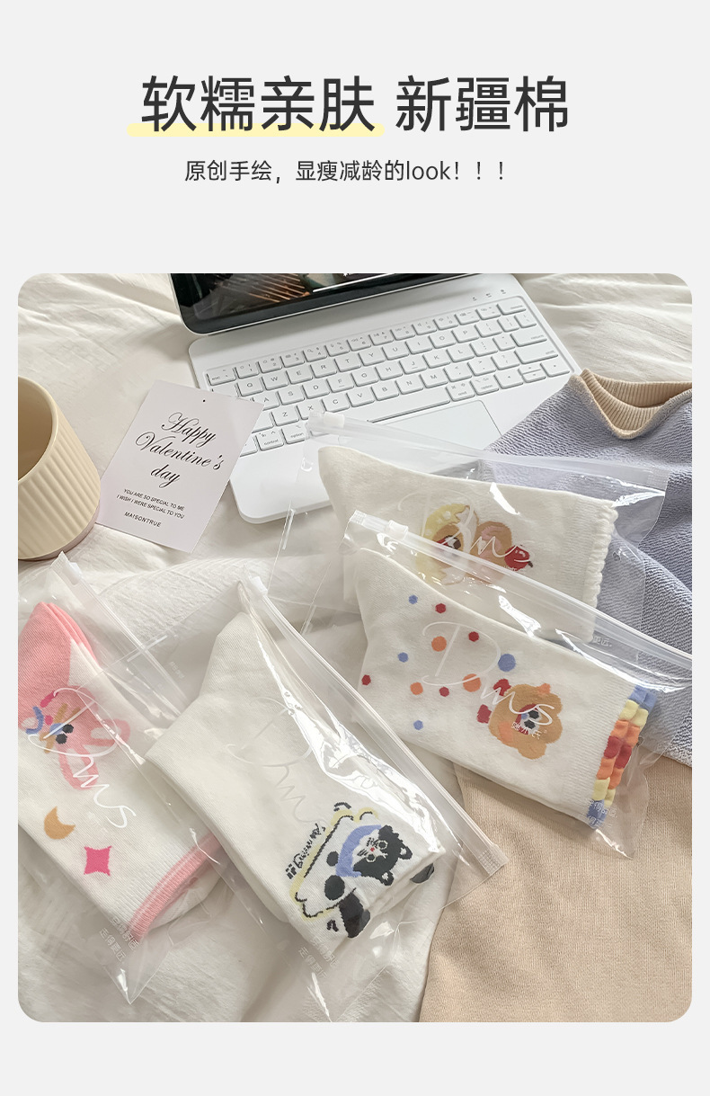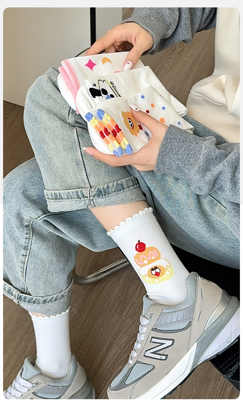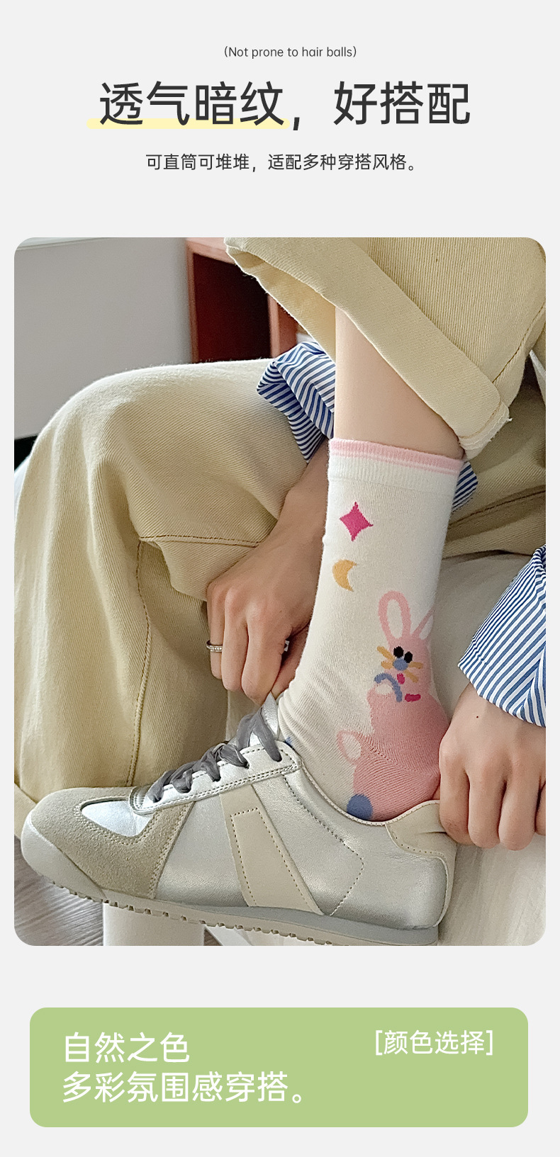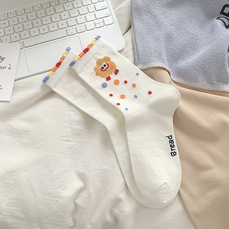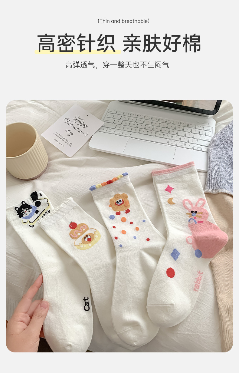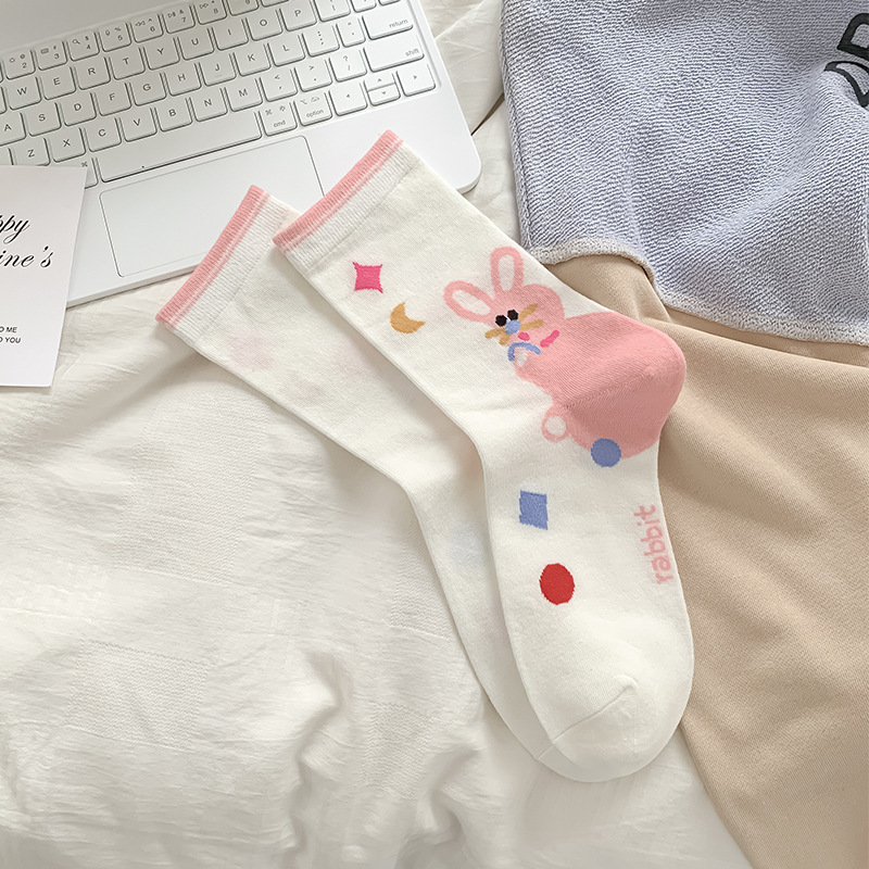 만화 귀여운 흰색 양말 여성 스타킹 Ins 유행 일본 스타일 중간 길이 양말 달콤한 고양이 토끼 학생 스택 양말스토어 가기
