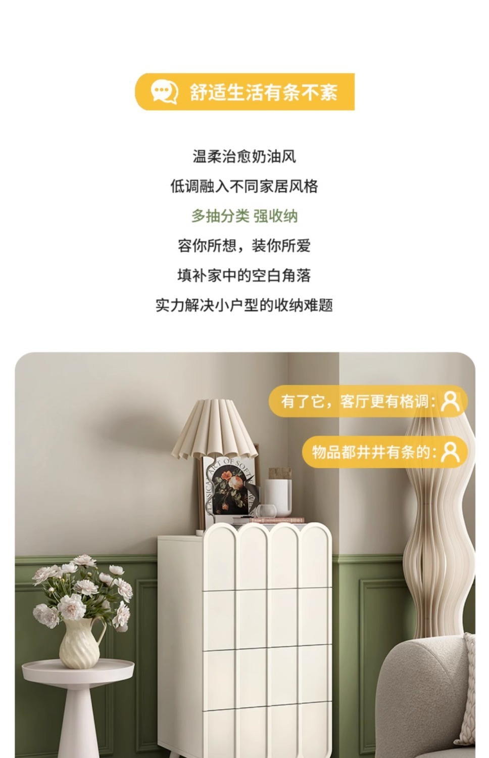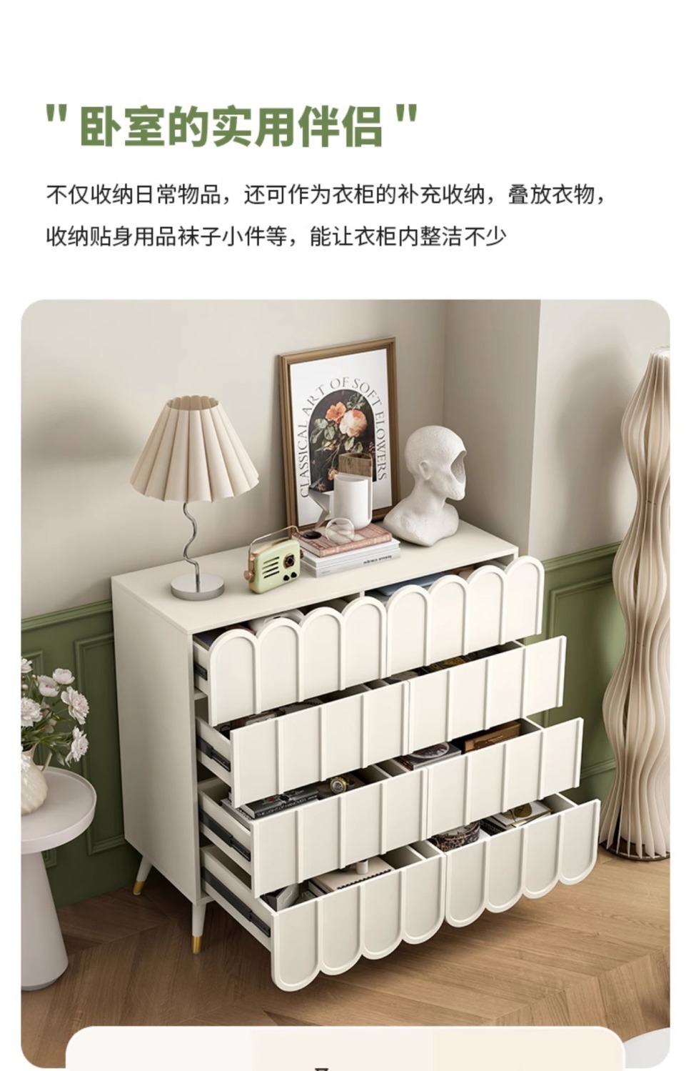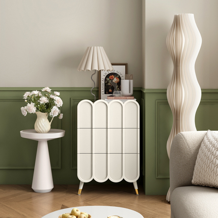 프랑스 크림 스타일 서랍 캐비닛 거실 소파 옆 캐비닛 침실 침대 끝 저장 캐비닛 다기능 간단한 서랍 유형