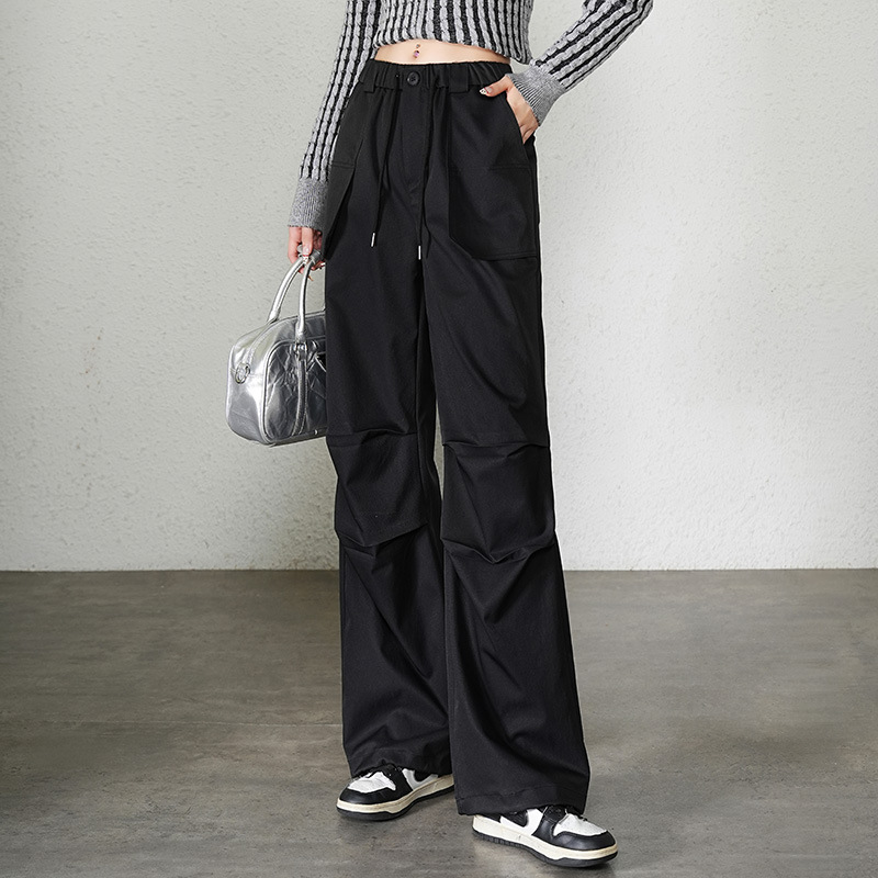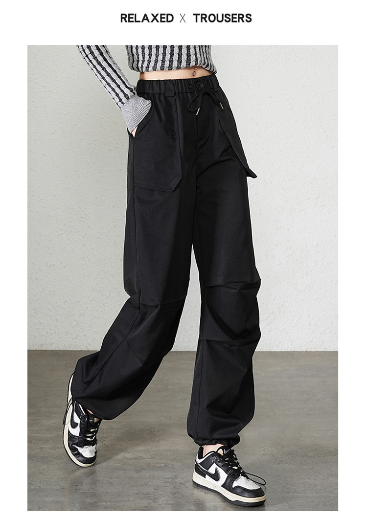 크록 바지 여성의 봄과 가을 새로운 도착 작은 스트레이트 블랙 번들 발 탄성 높은 허리 스포츠 등산 바지 가을