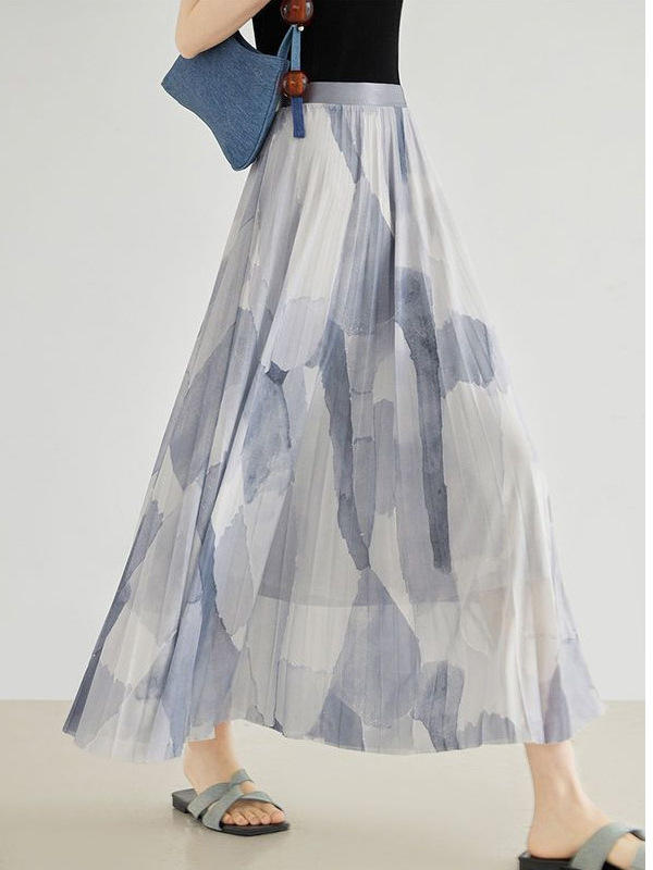 경량 포장 인쇄 된 주름 치마 여성 여름 2024 새로운 스타일 우아한 아름다운 휴일 스타일 A-라인 긴 치마스토어 가기