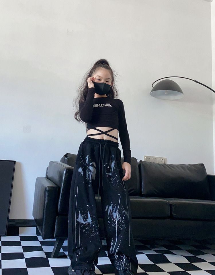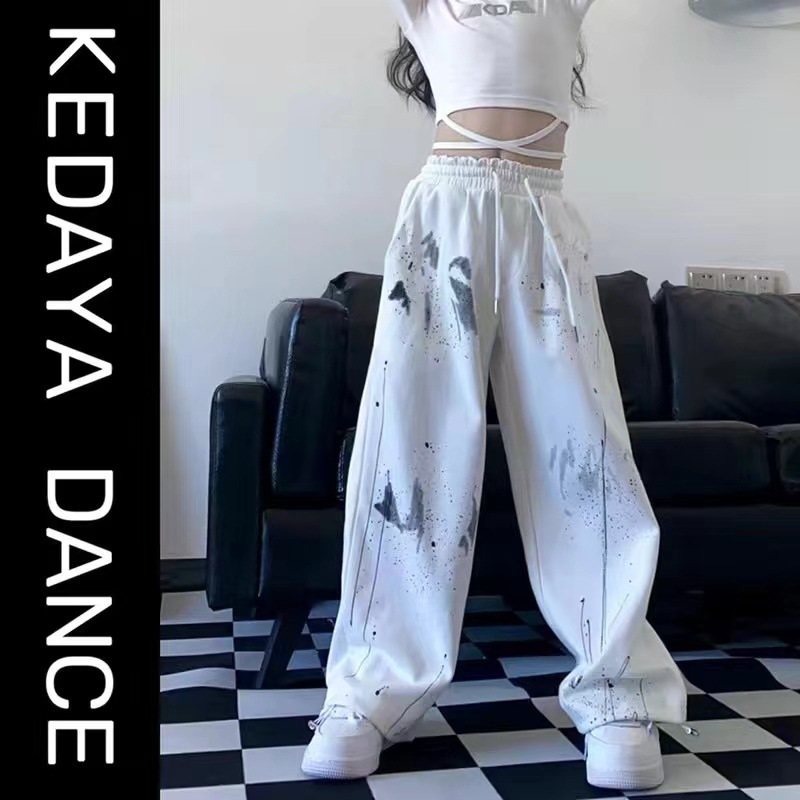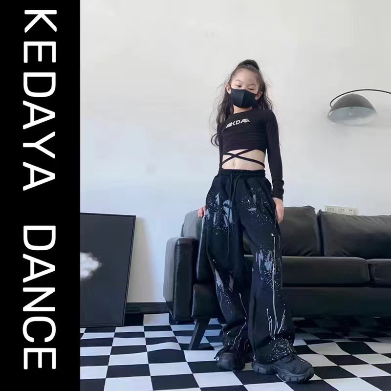 어린이 착용 2024 가을 새 소녀 느슨한 힙합 바지 재즈 댄스 스포츠 바지 니트 바지 캐주얼 바지