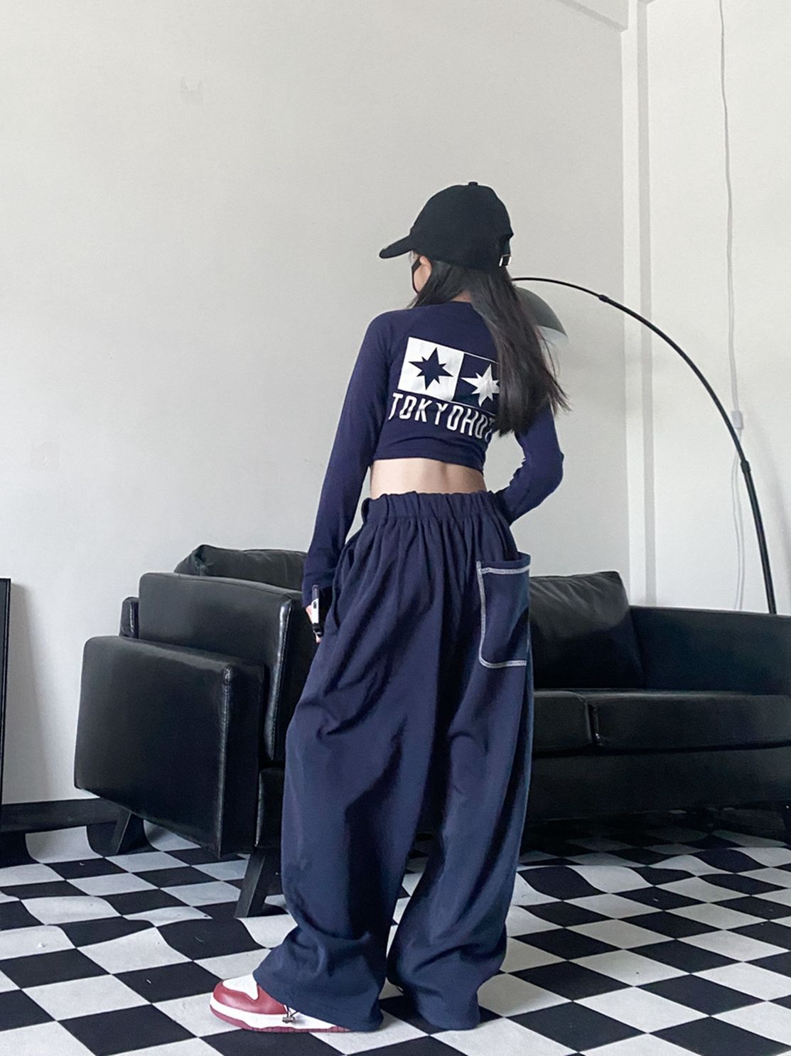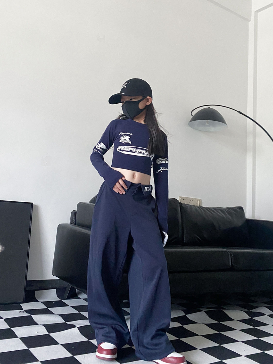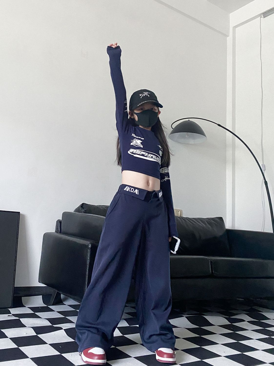 2024 봄과 가을 새로운 아동복 달콤한 쿨 소녀의 슬림 핏 티셔츠 턴 허리 슬리밍 느슨한 바지 재즈 댄스 세트 트렌디스토어 가기