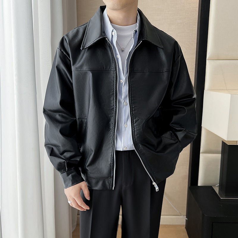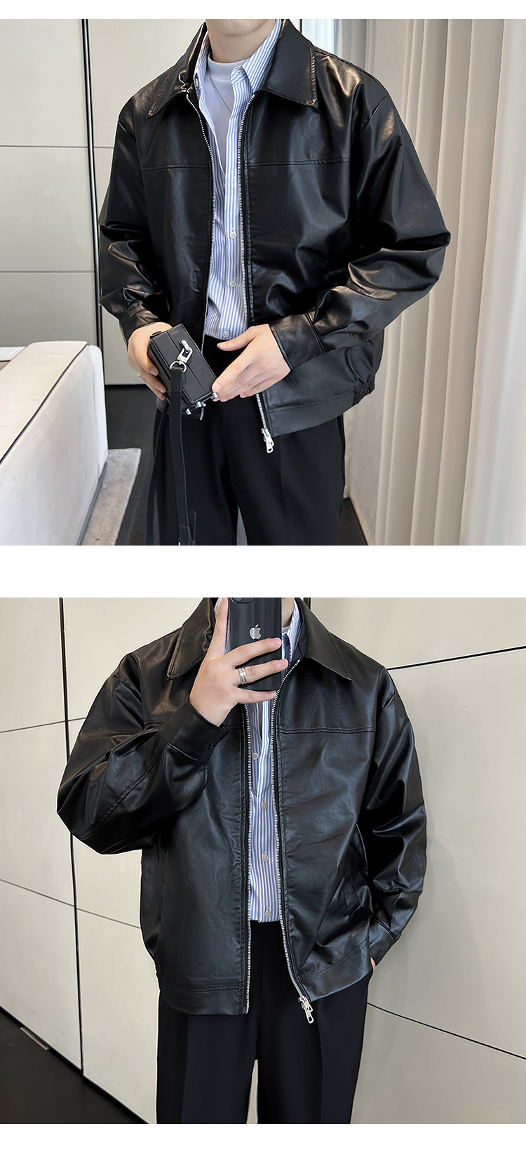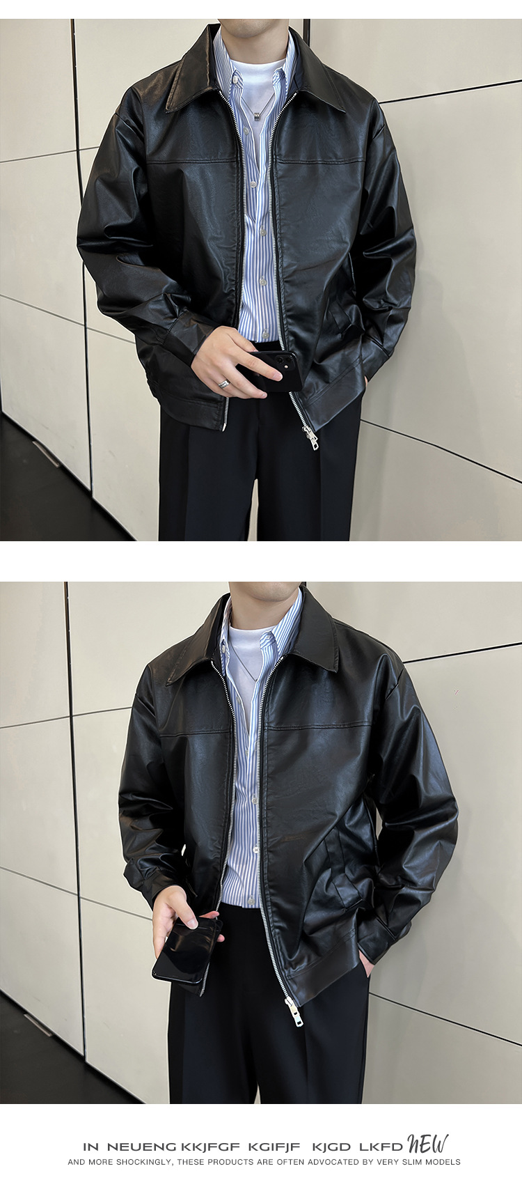 Pushuai Pu 가죽 의류 틈새 디자인 패션 브랜드 더블 지퍼 어깨 패드 가죽 재킷 남성 오토바이 의류 가을과 겨울 하이 스트리트 재킷스토어 가기