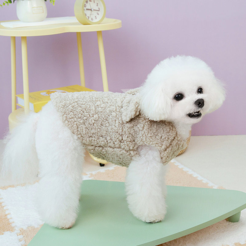 2024 개 옷 가을과 겨울 새로운 기모 조끼 애완 동물 의류 고양이 옷 작은 개 순풍 귀 양털스토어 가기