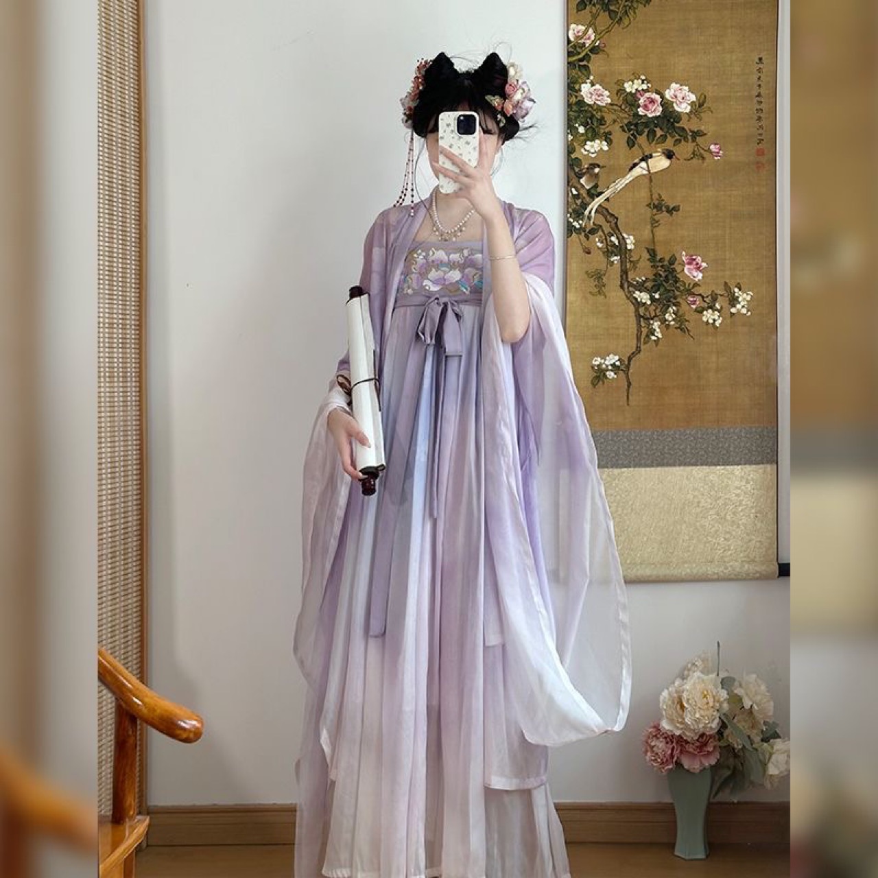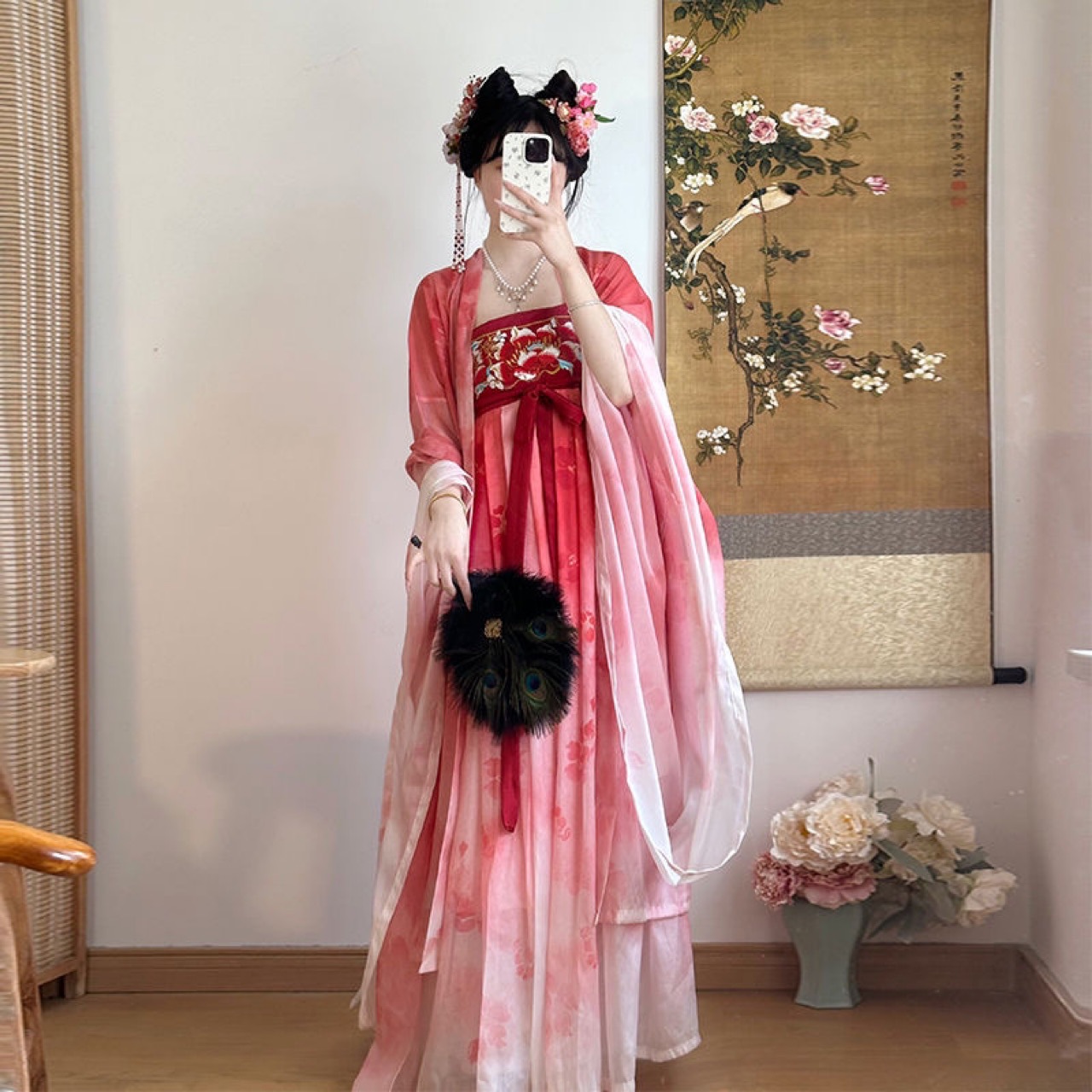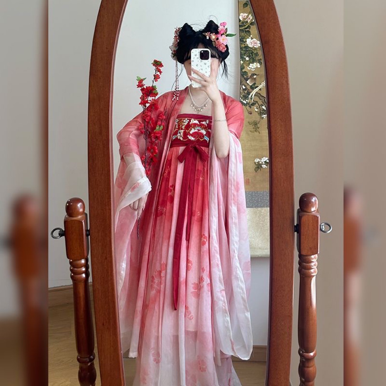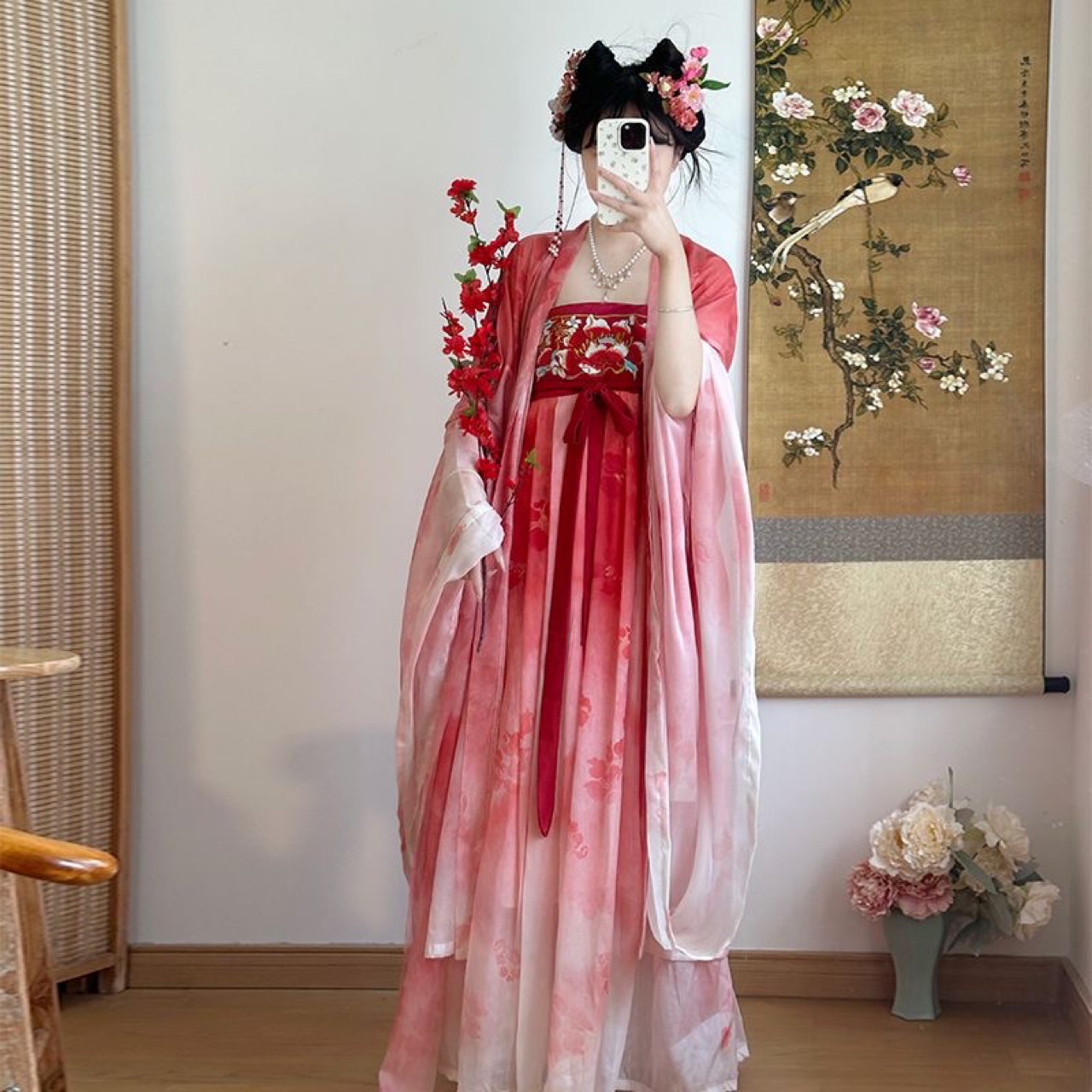 가장 친한 친구 새로운 여성의 4 월 꽃 신들 당나라 스타일 Chebula 스커트 한푸 요정 스타일 큰 소매 셔츠 자수 봄 여름 가을 세트